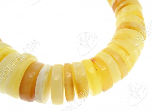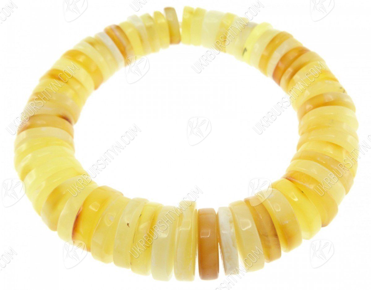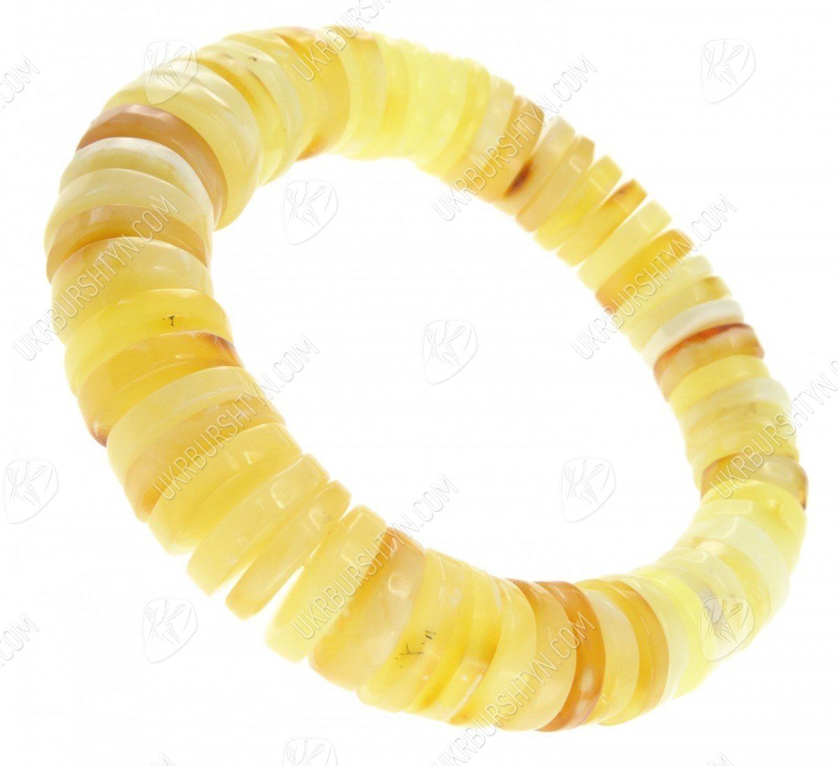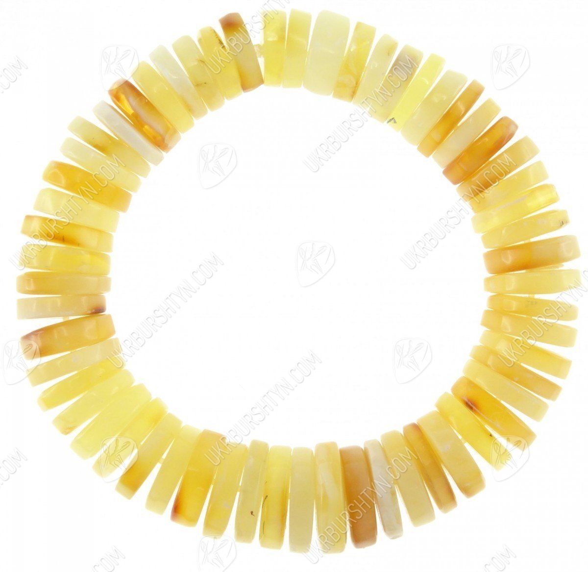 Плануєте замовити жіночі браслети в подарунок для подруги, родички або коханої? Варто враховувати не тільки якість виробу, але й характер тієї дами, для якої він призначений. Наприклад, цей аксесуар з плоских круглих намистин підійде веселим, креативним, творчим і неординарним особистостям. Майстер виточив всі елементи з натурального поліського бурштину, тому кожна деталь в цьому виробі чимось відрізняється - нюансами забарвлення або внутрішньою фактурою, прозорістю або формою. Так і хочеться розглянути їх у всіх подробицях! Міцна основа і зручний, практичний дизайн дозволяють носити цю оригінальну прикрасу хоч цілий день - вона не впаде і не буде заважати.