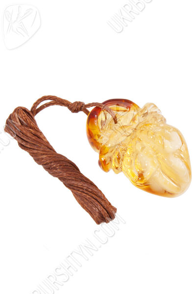 Іноді хочеться зробити сюрприз коханій людині просто так, і це прекрасно! Щоб радувати близьких, привід не потрібен. А ось з вибором презенту вам з радістю допоможе інтернет-магазин подарунків та сувенірів «Янтар Полісся». Тут ви зустрінете аксесуари на будь-який смак. Серед них і цей оригінальний кулон у вигляді маленького мішечка. Він зроблений вручну з натурального напівпрозорого бурштину світло-помаранчевого кольору. Камінь доповнений тонким джгутом, що нагадує плетену мотузку. Ця прикраса служить своєму власникові талісманом на удачу й допомагає залучити матеріальні блага. Подаруйте її людині, про яку ви піклуєтеся найбільше у світі. Вона обов'язково оцінить вашу увагу!