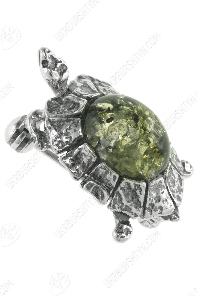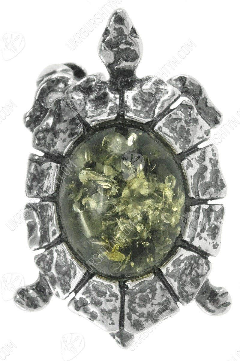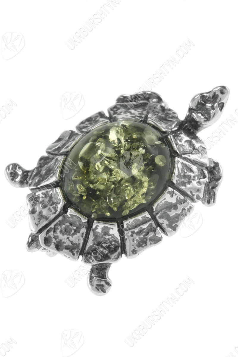 Брошка з чорненого срібла і бурштину «Черепаха»