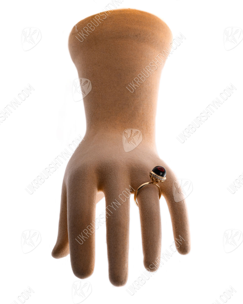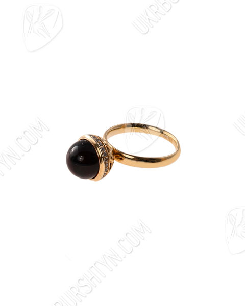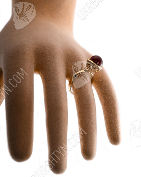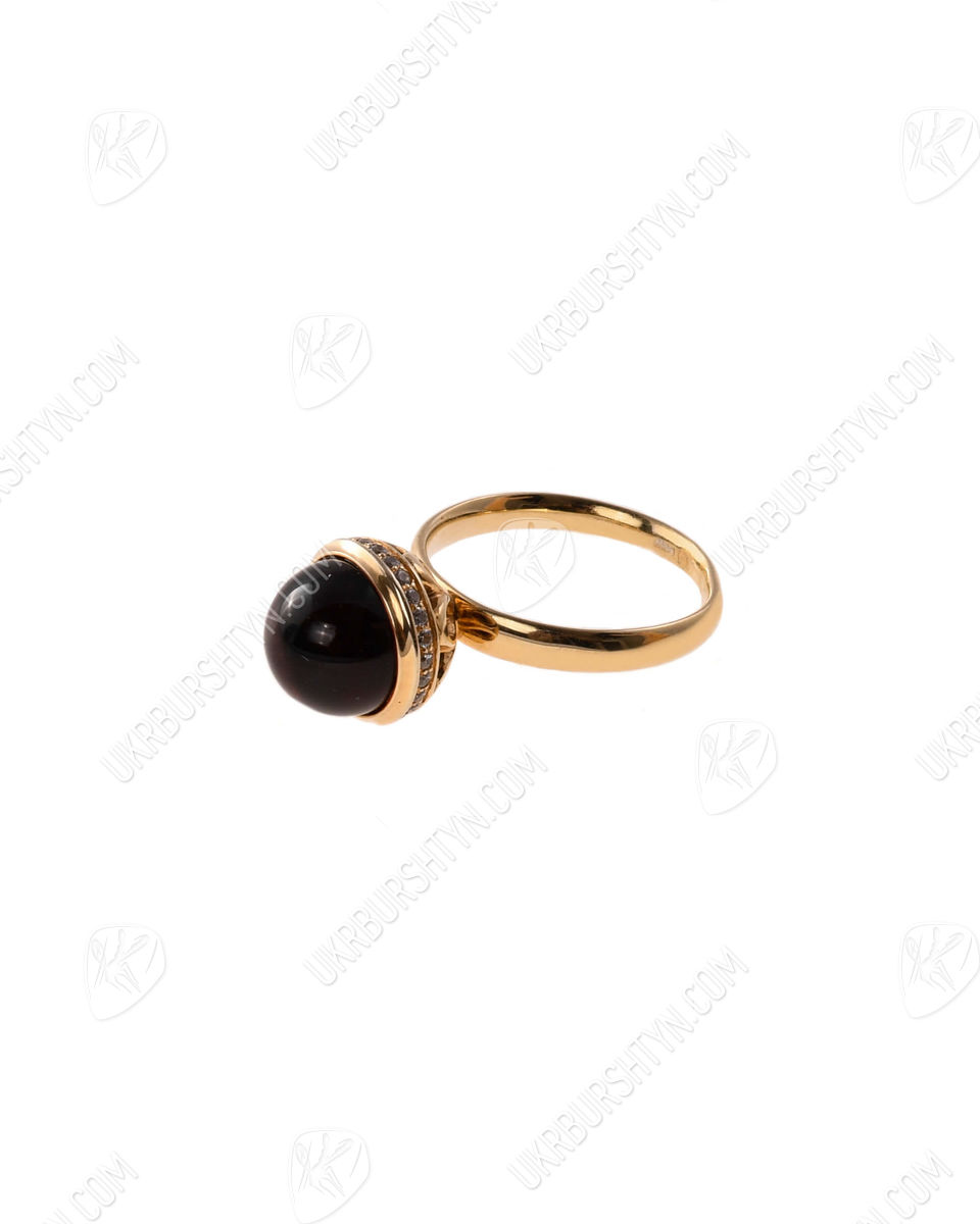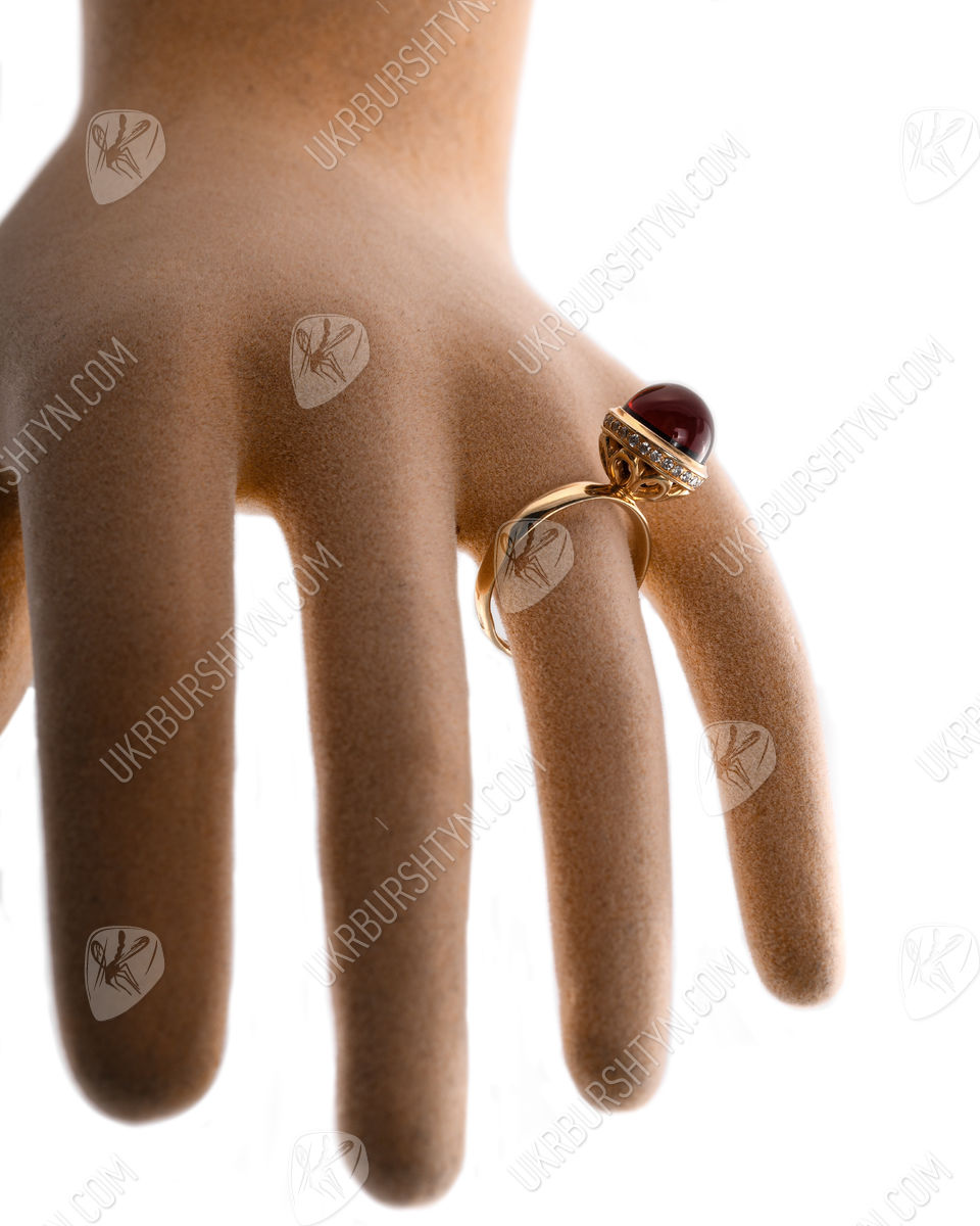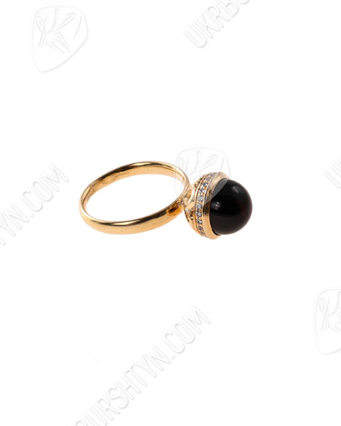 Каблучка срібна з бурштином та фіанітами «Амедея»