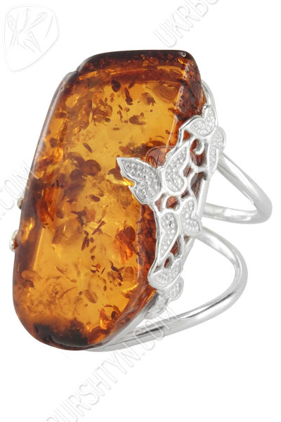 Перстень з бурштином «Політ метеликів»