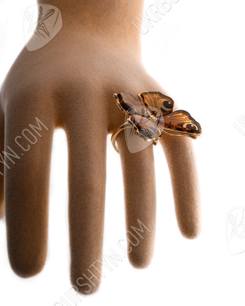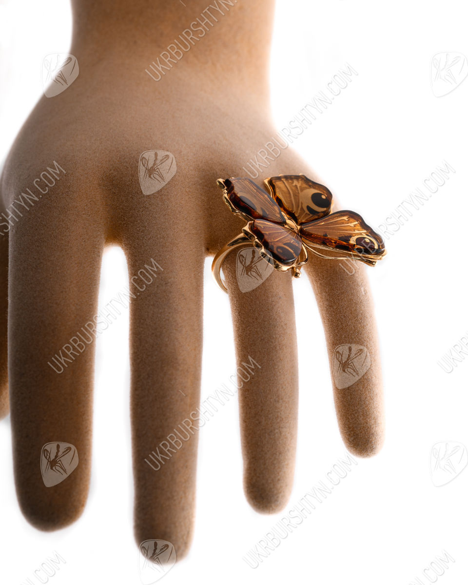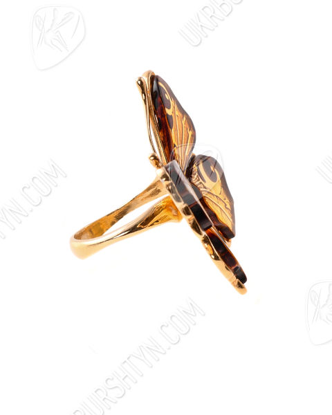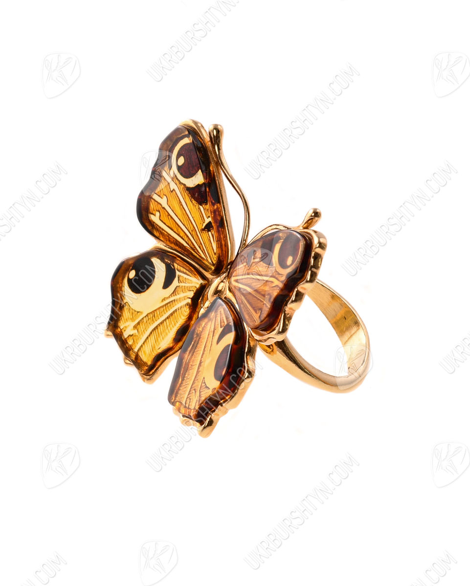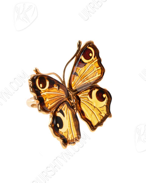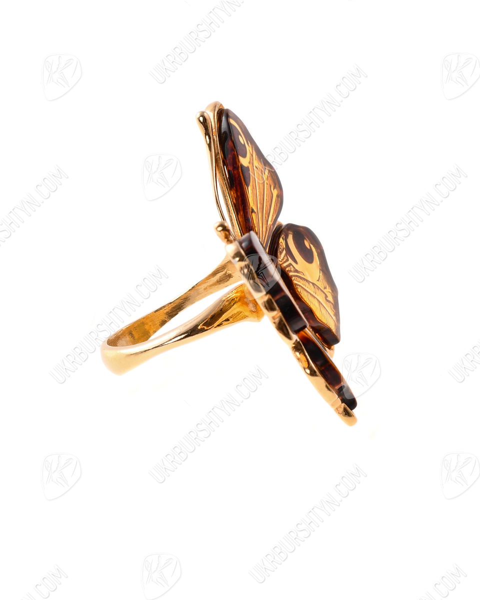 Перстень срібний з бурштином та позолотою «Метелик»