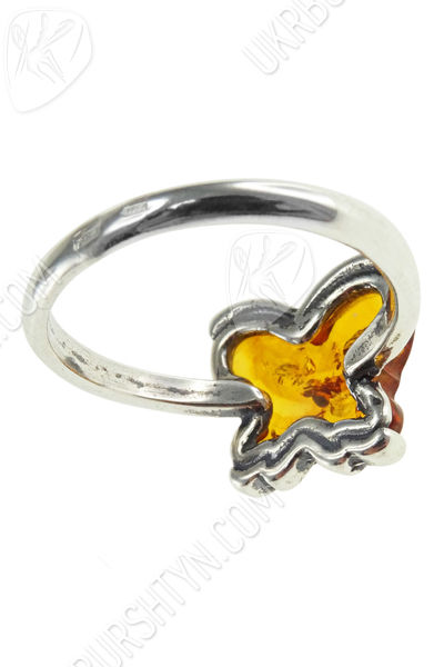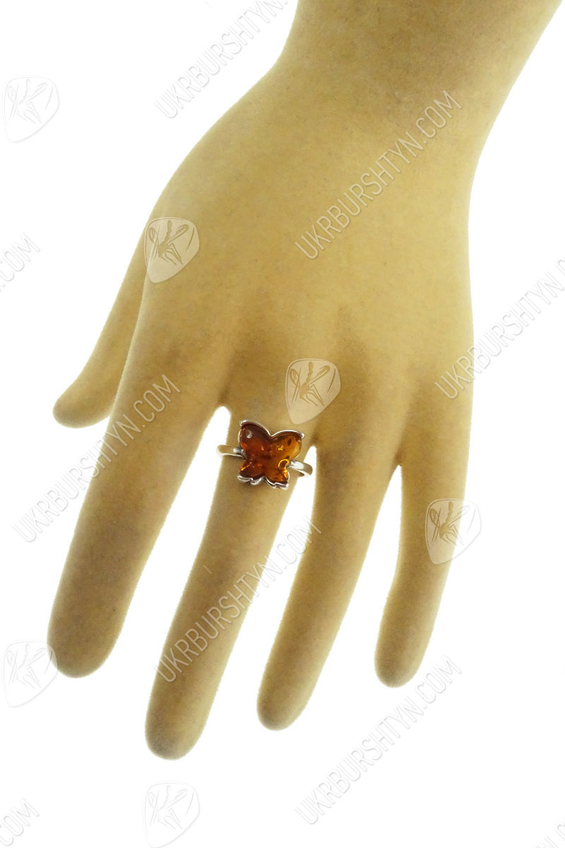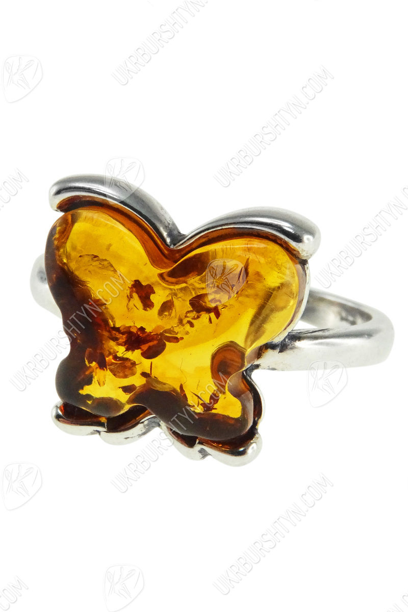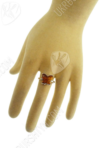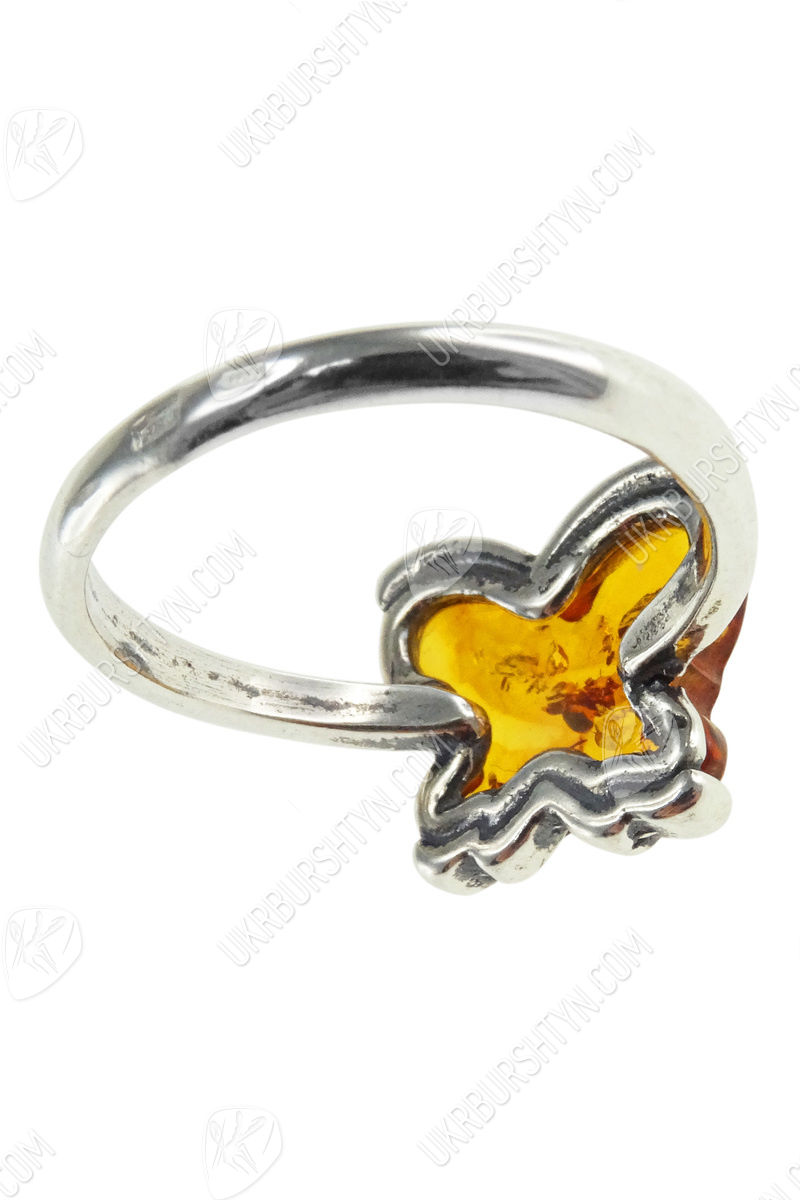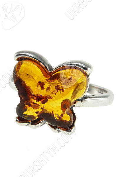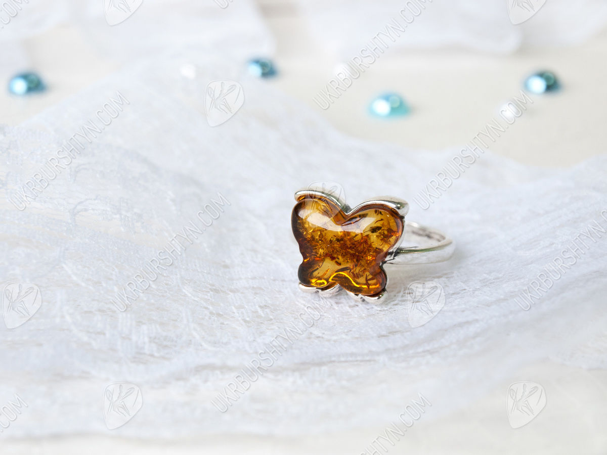 Срібний перстень з бурштином «Метелик»