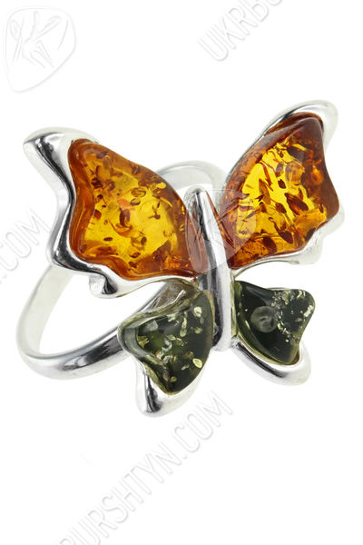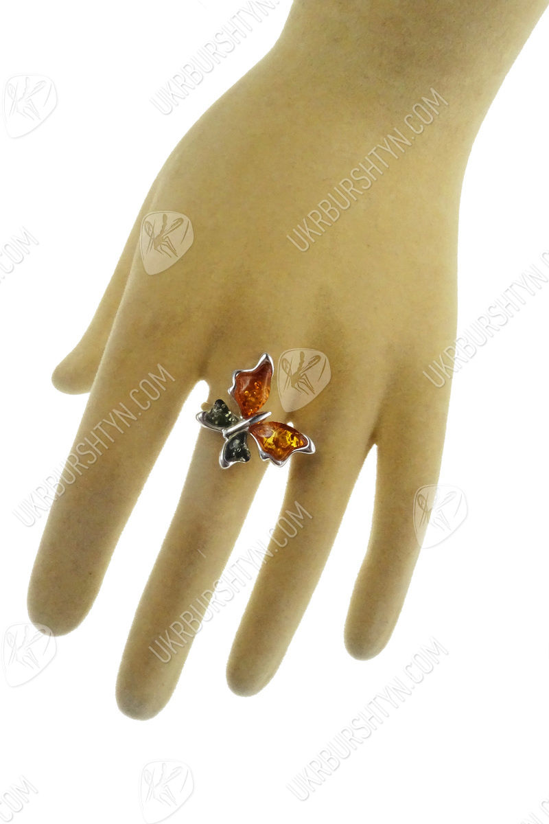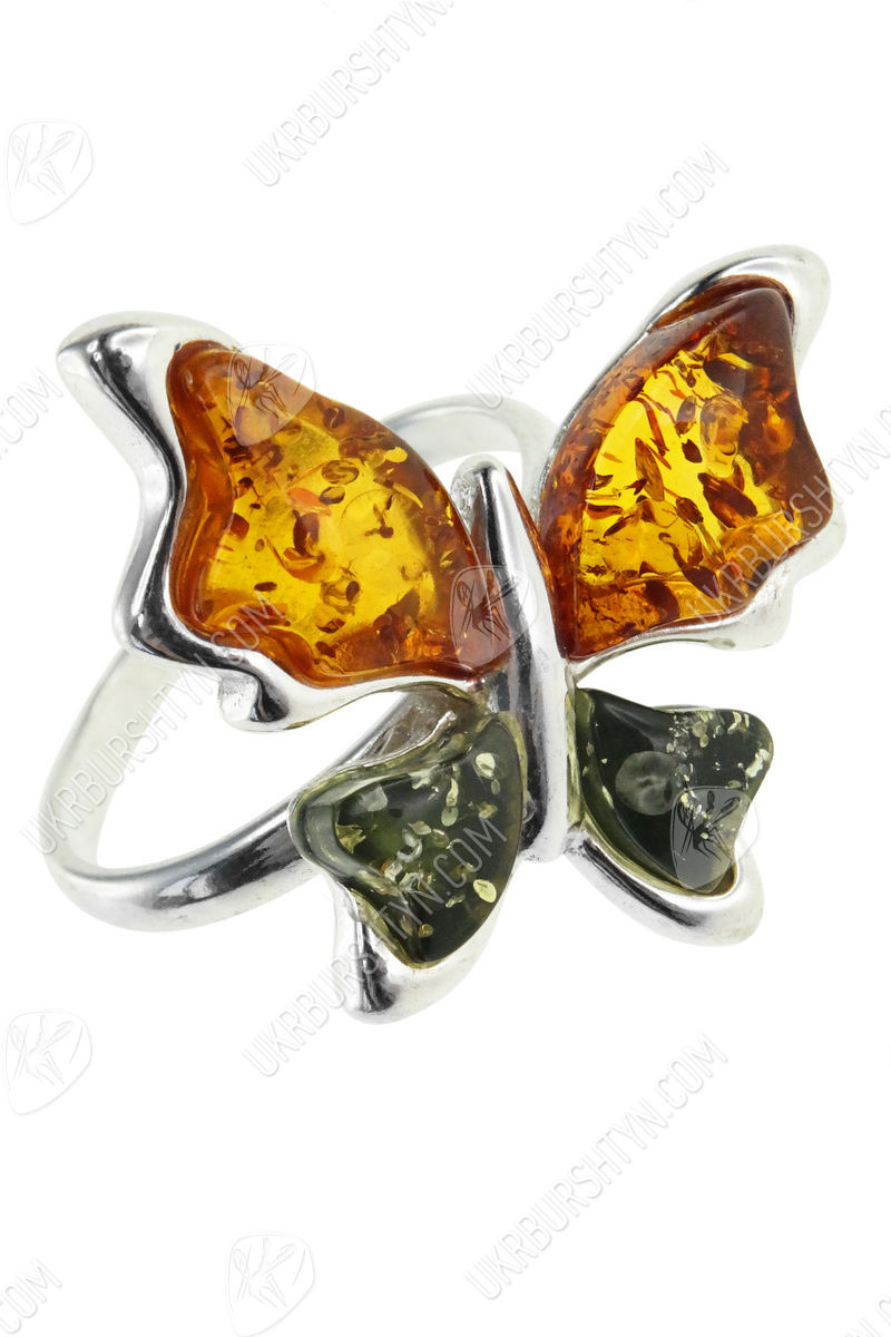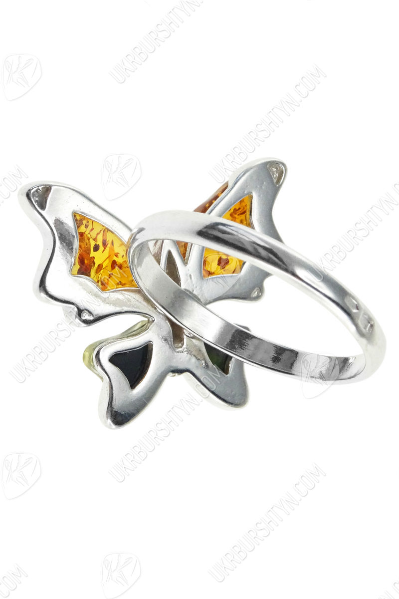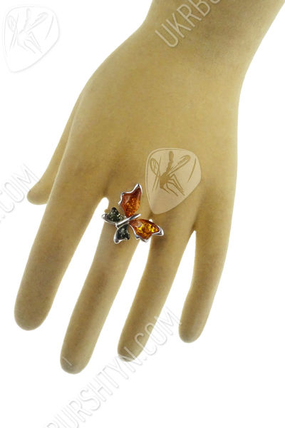 Срібний перстень з бурштином «Метелик»