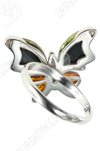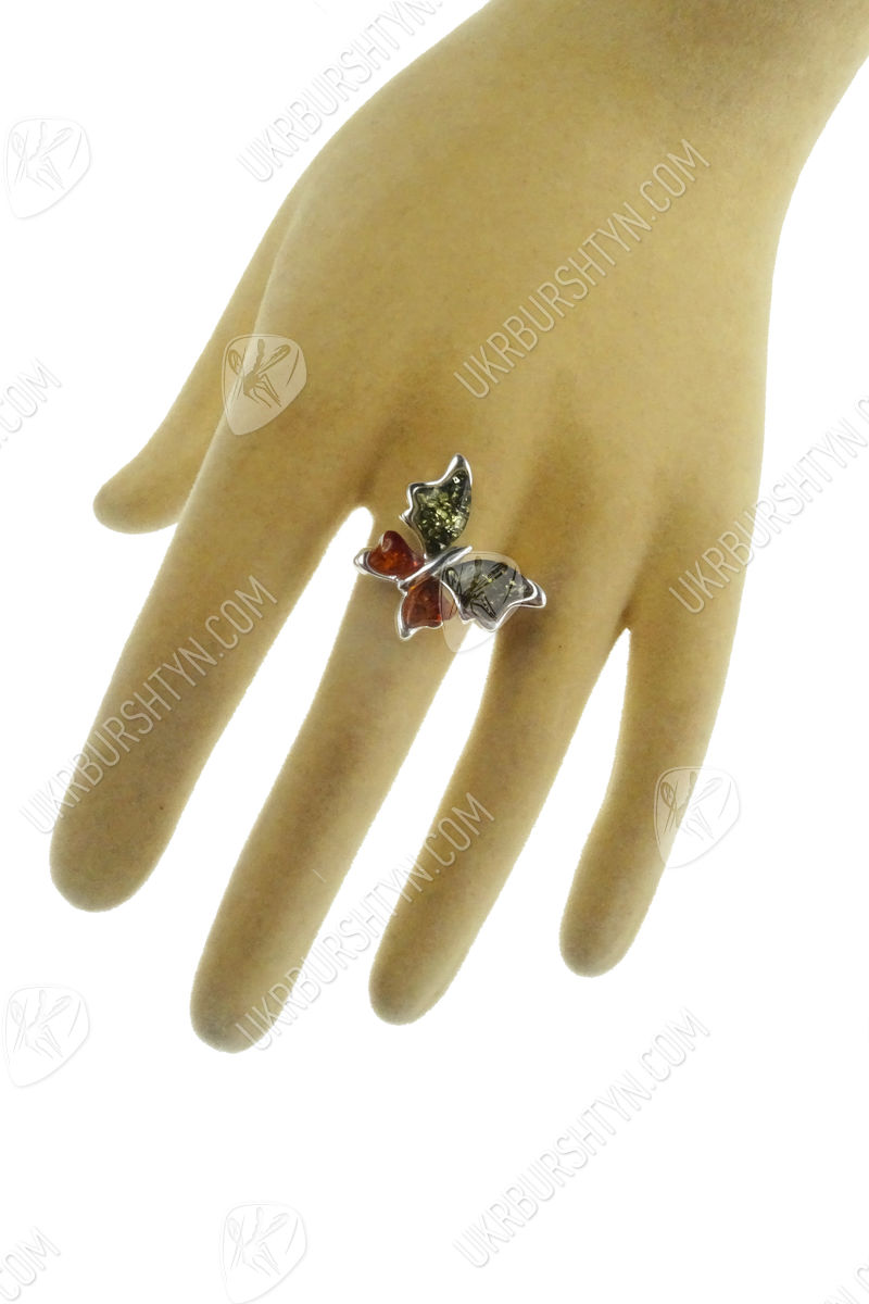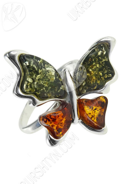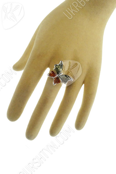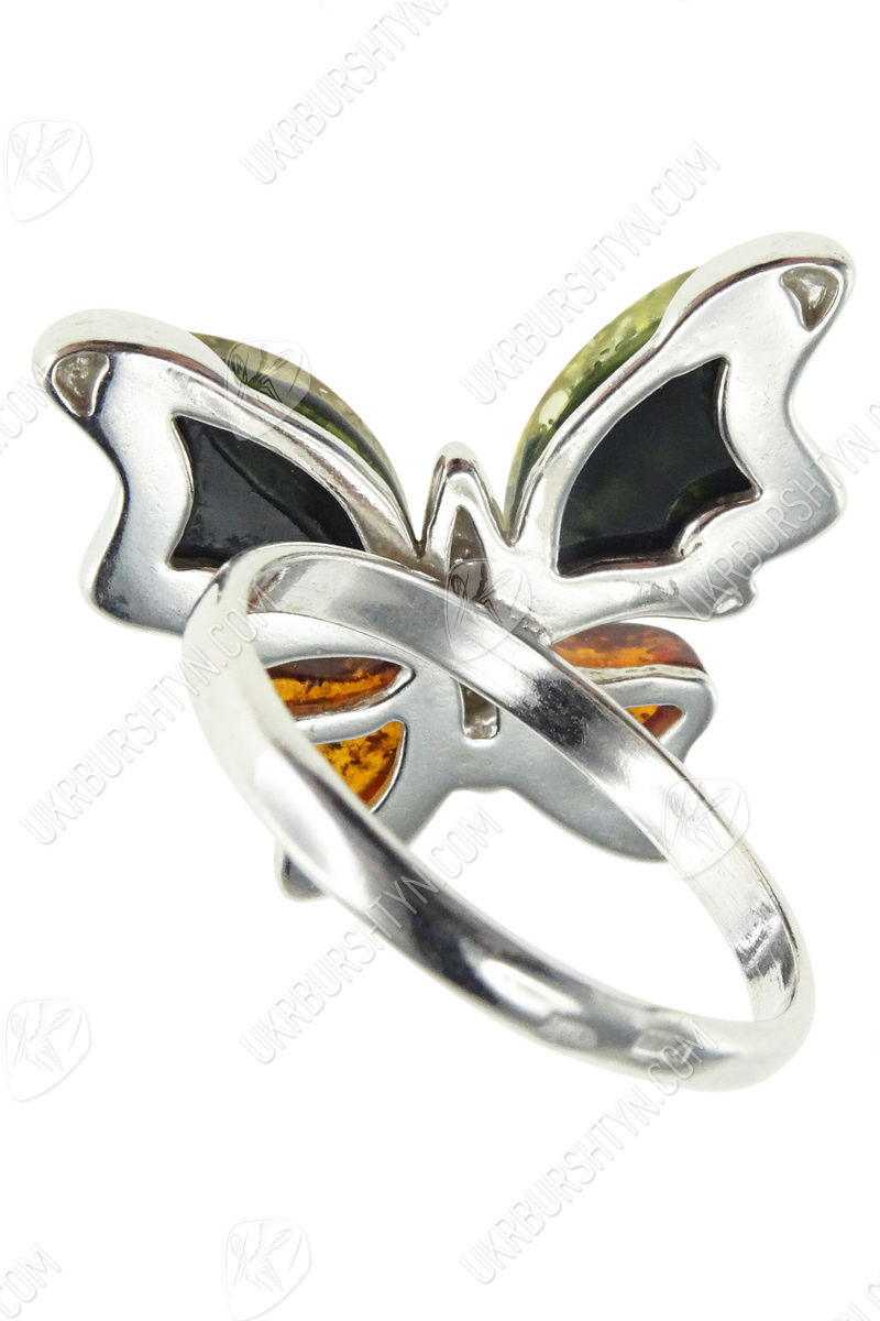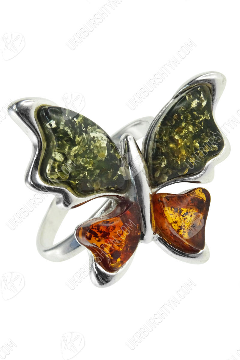 Срібний перстень з бурштином «Метелик»