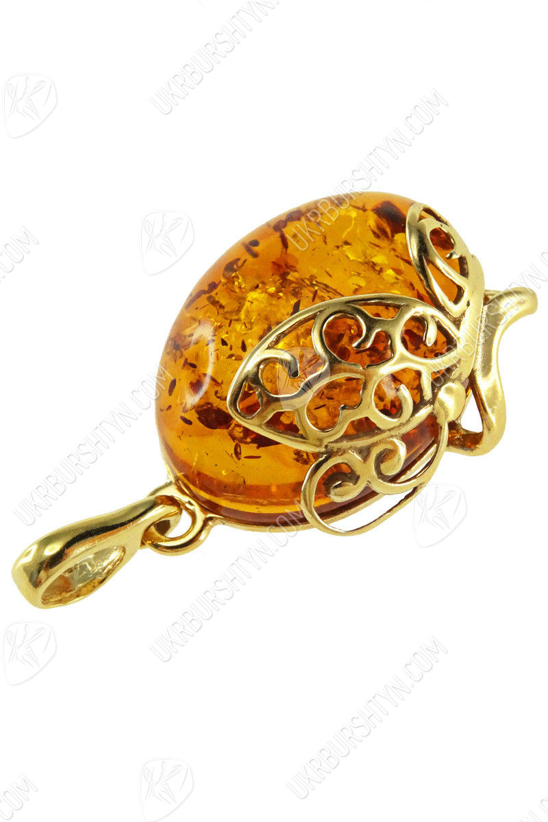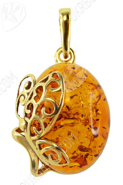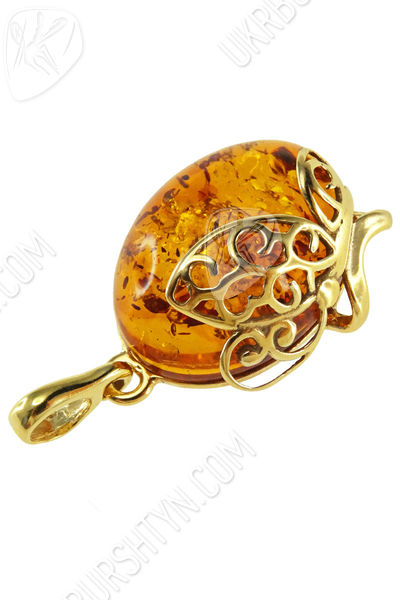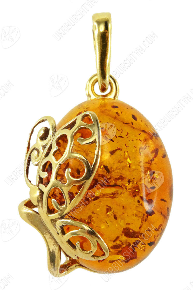 Кулон з каменю бурштину в срібній оправі «Метелик»