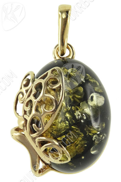 Кулон з каменю бурштину в срібній оправі «Метелик»