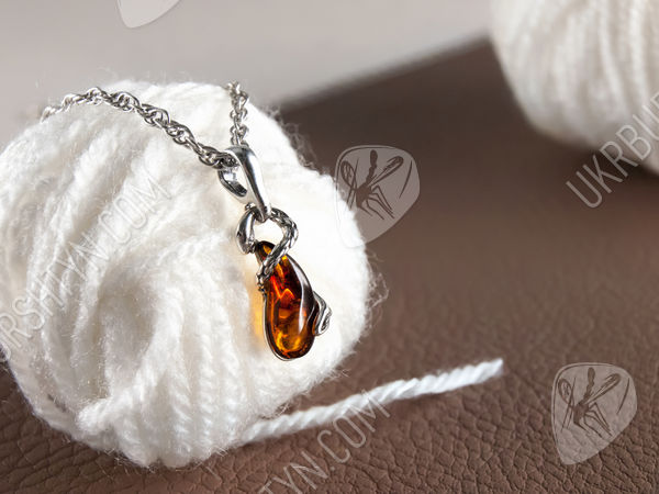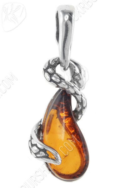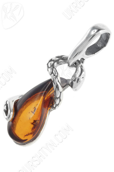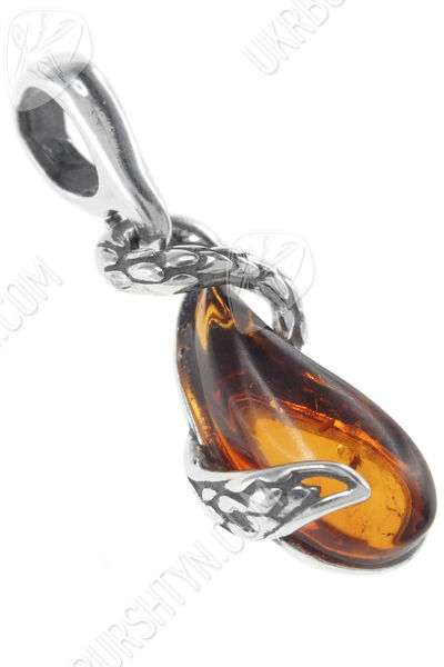 Кулон з чорненим сріблом і бурштином «Змійка»
