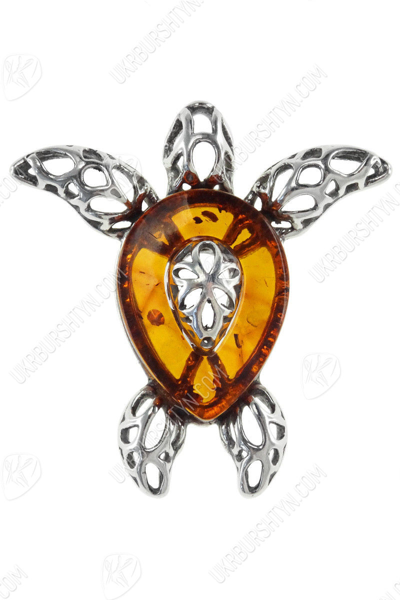 Кулон з бурштином і сріблом «Черепаха»