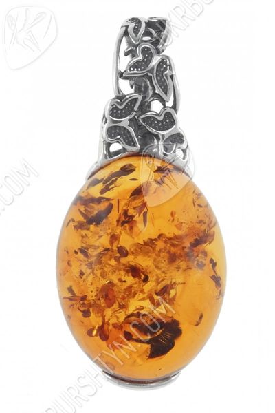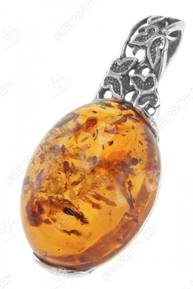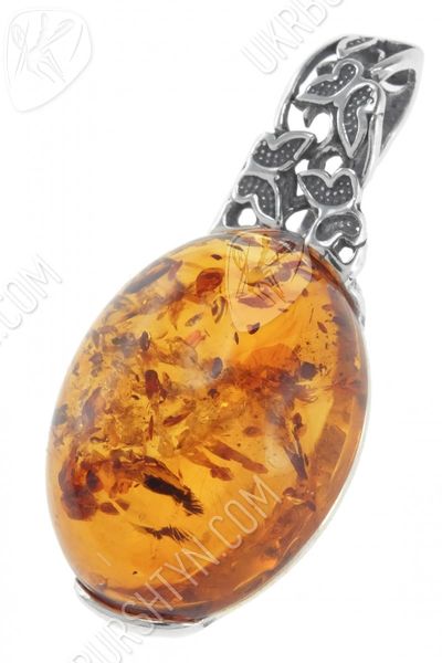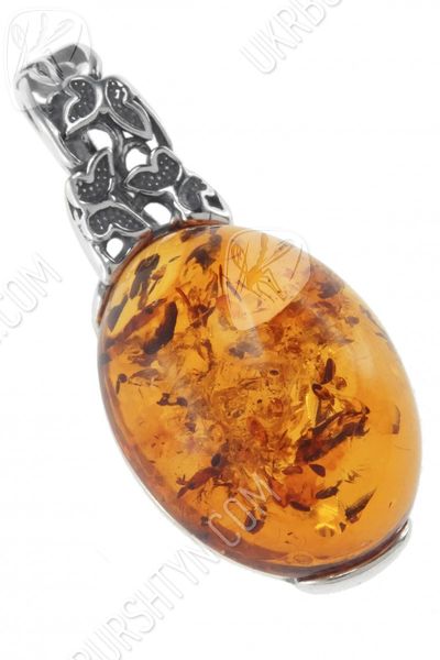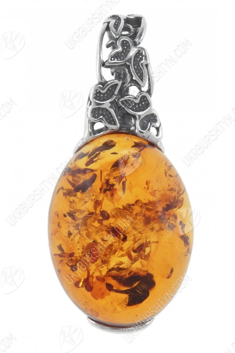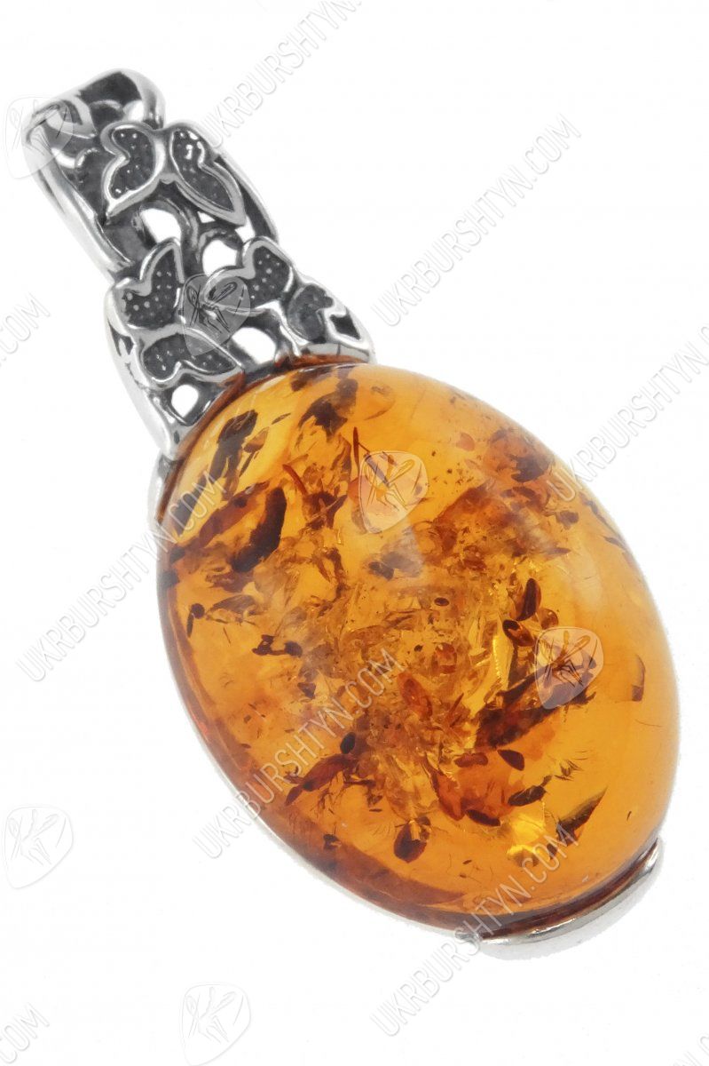 Кулон з бурштиновим кабошоном в срібній оправі «Політ метеликів»