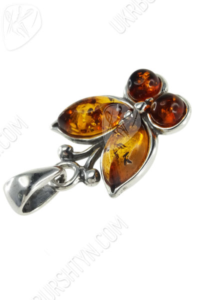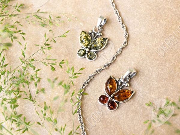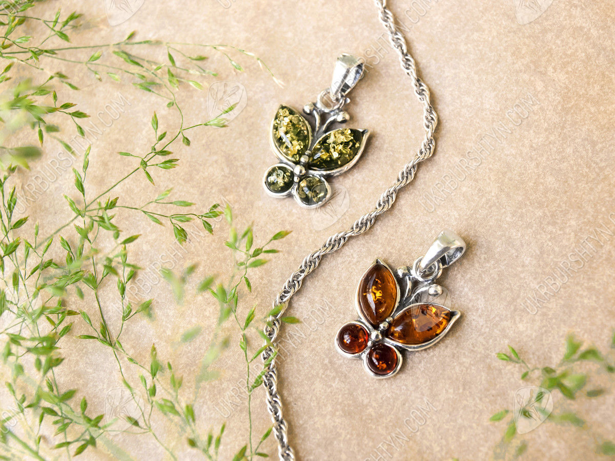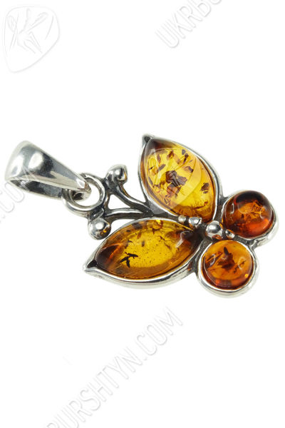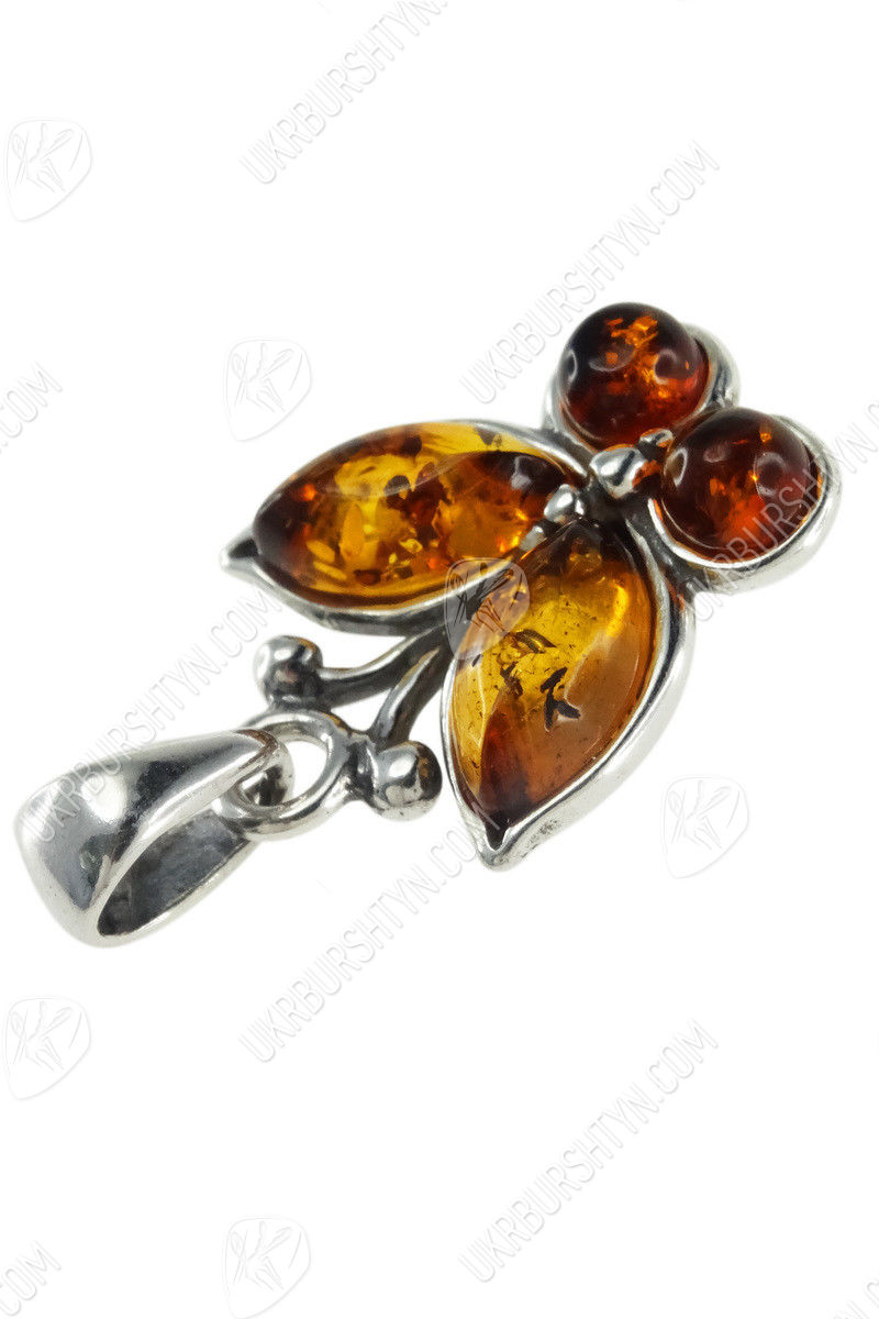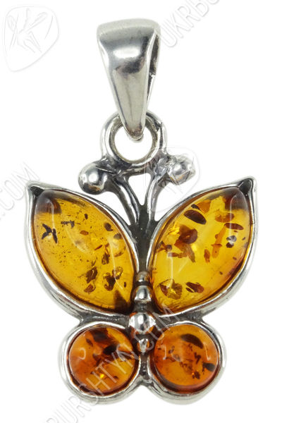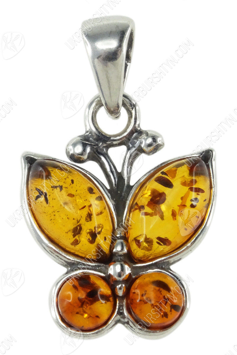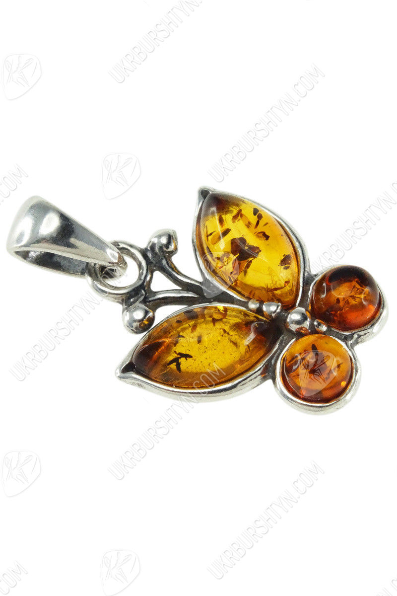 Срібний кулон з бурштином «Метелик»