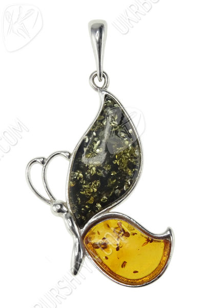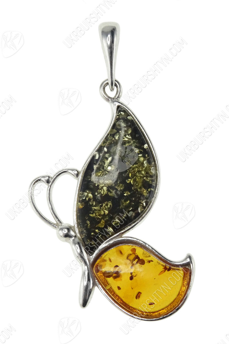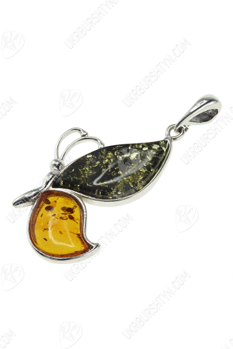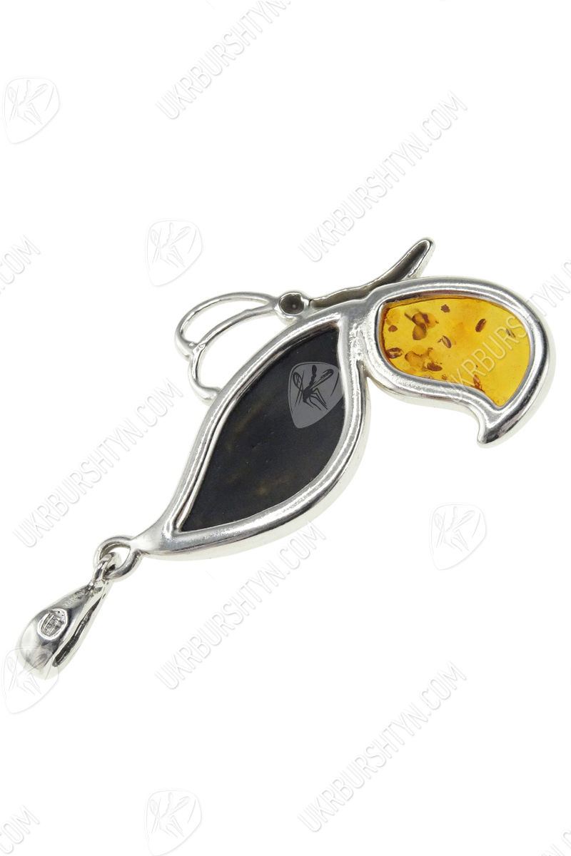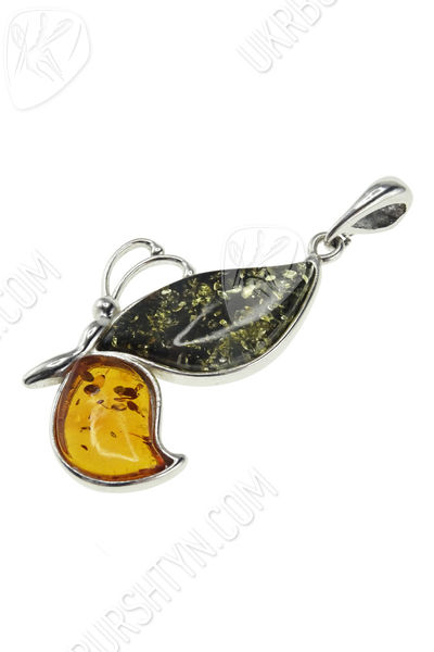 Срібний кулон з бурштином «Метелик»
