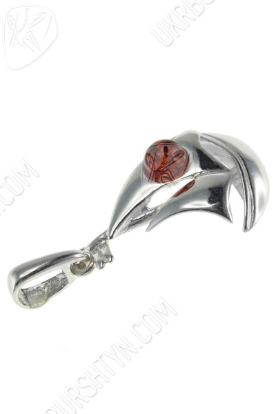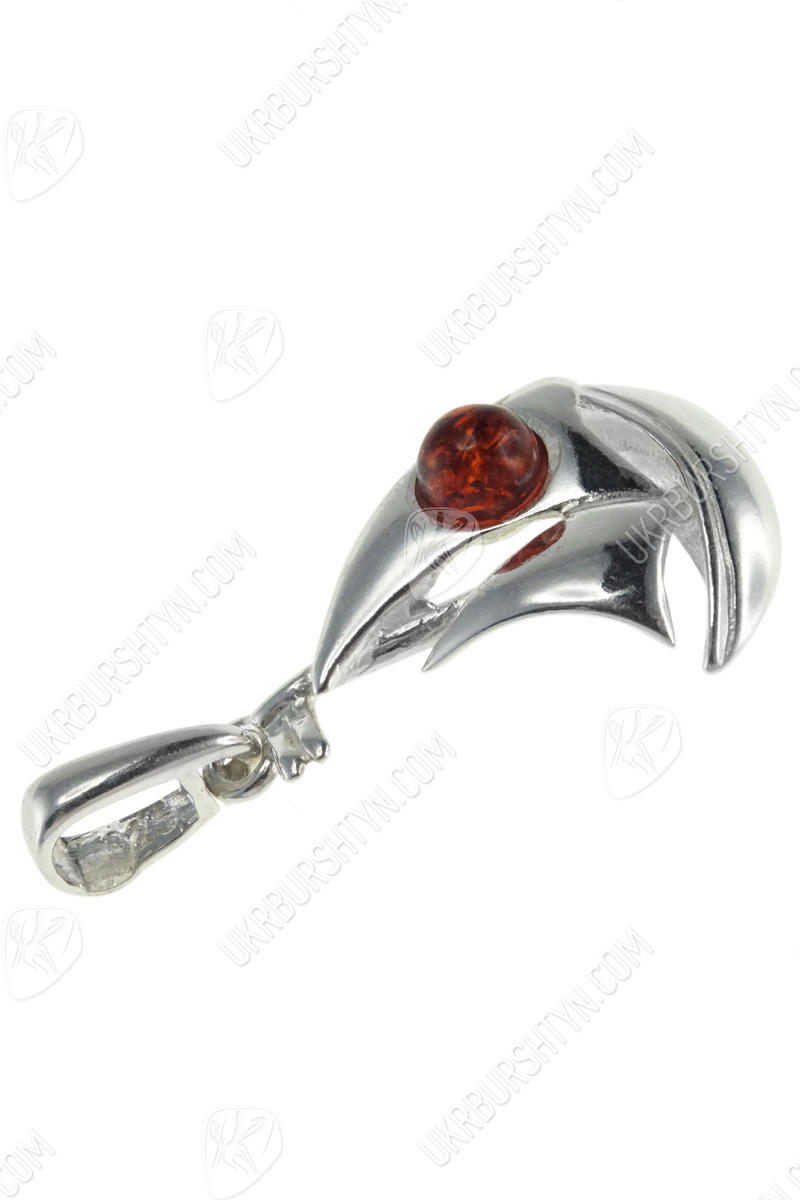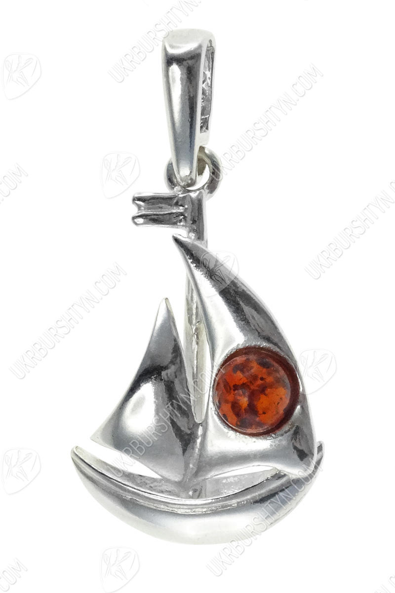 Срібний кулон з бурштином «Кораблик»