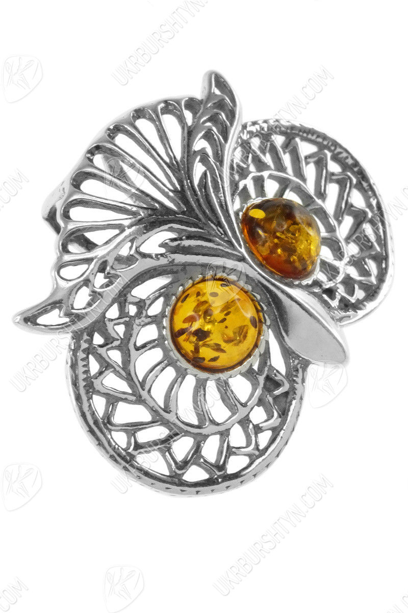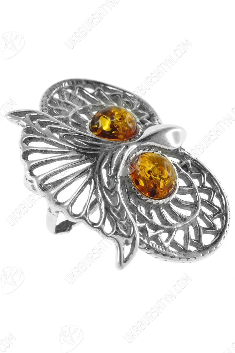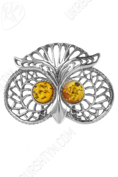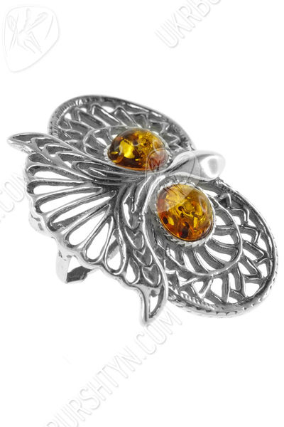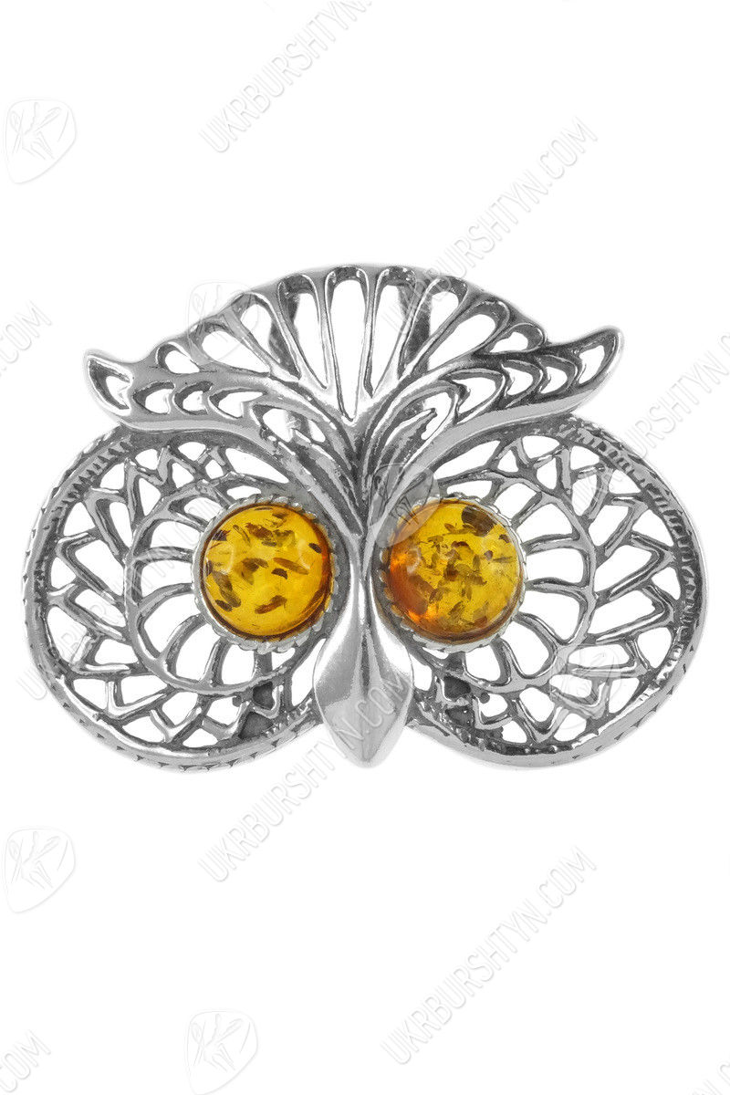Срібний кулон з бурштином «Сова»