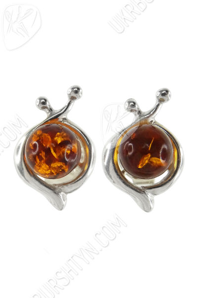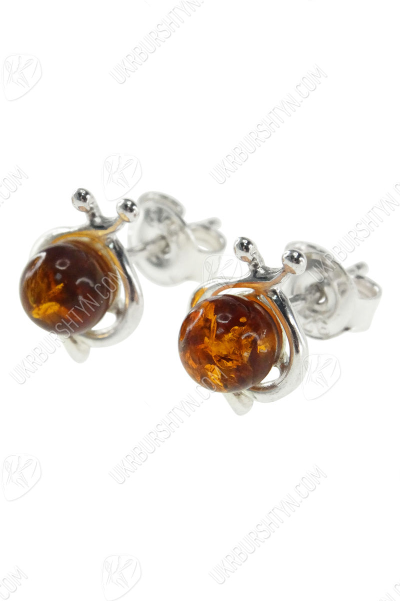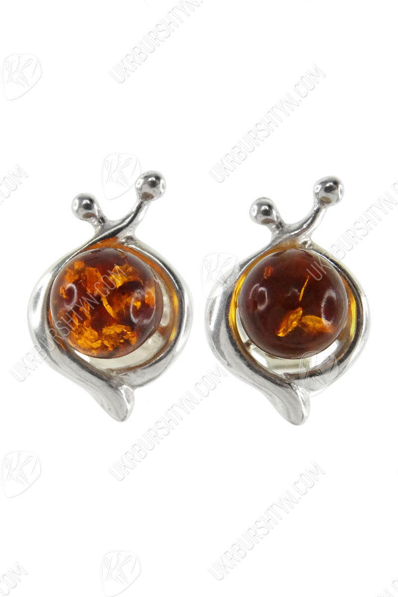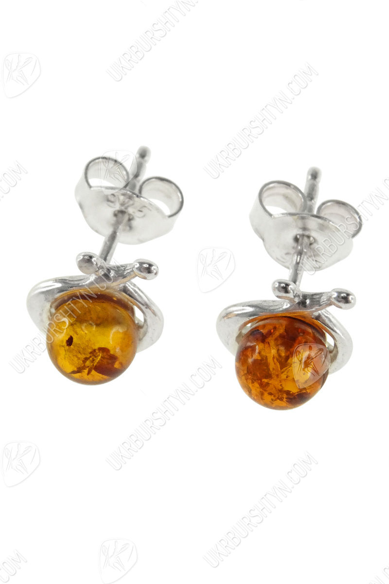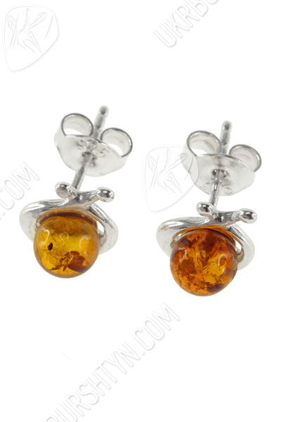 Сережки-пусети з бурштиновими кабошонами «Ірада»