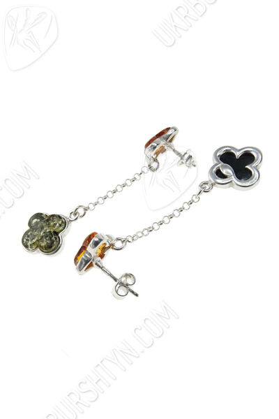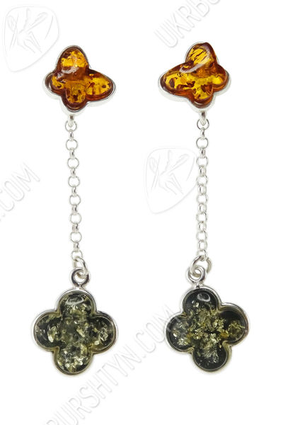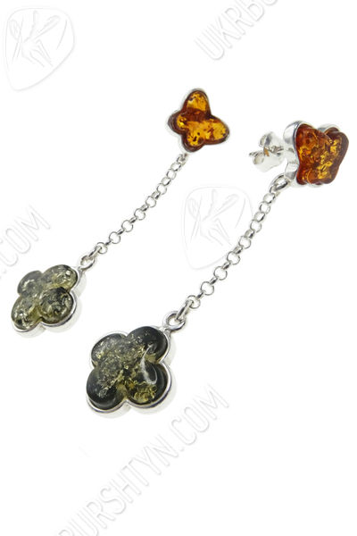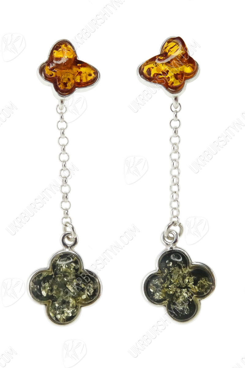 Сережки-пусети у формі метеликів з підвісками «Конюшина»