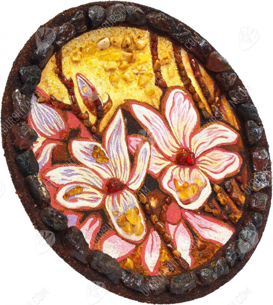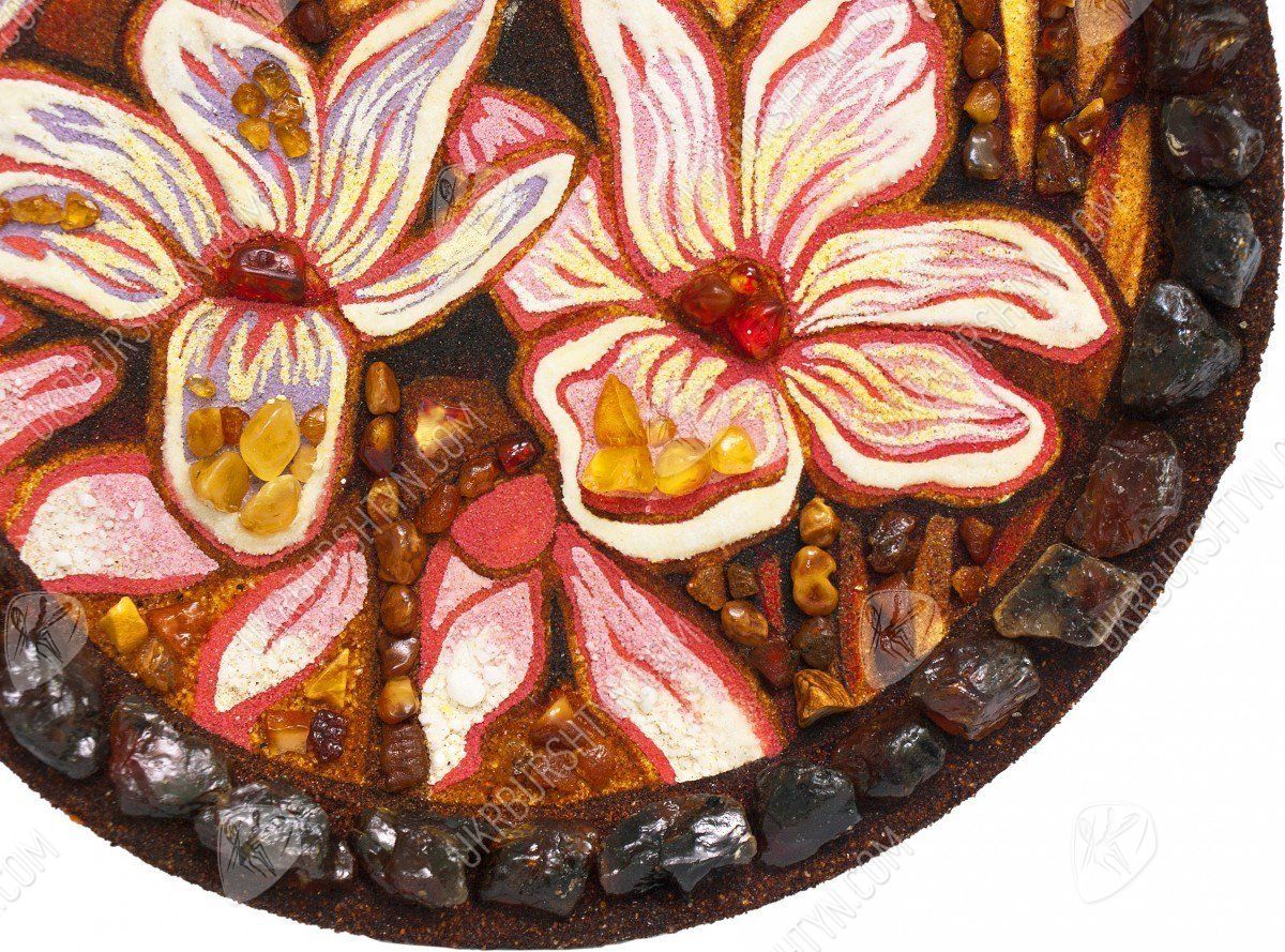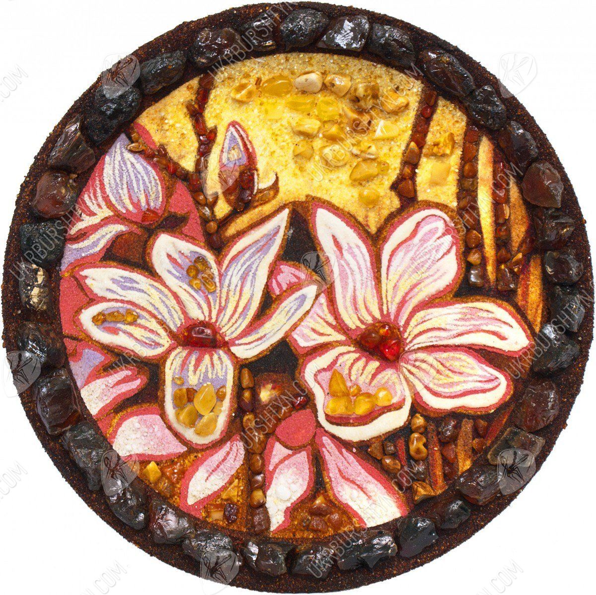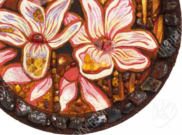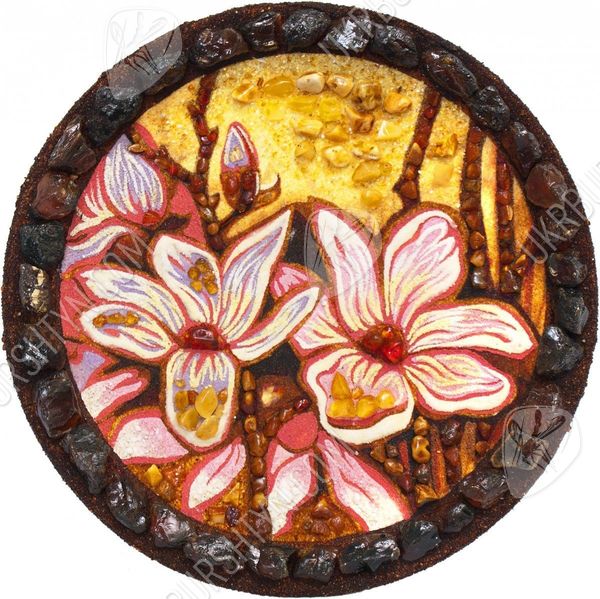 Лілії - символ чистоти, милосердя та жіночої краси. Не випадково вони були на гербах французьких королев! А тепер і Ви маєте можливість придбати настінні декоративні тарілки, на яких показані тендітні квіти. Поліський бурштин надав цьому витвору теплоту, об'єм та виразність. Золоті дорогоцінні камені, якими усипані пелюстки, нагадують крапельки роси, а інкрустація з більш темних самоцвітів імітує стебла і листя. Завершує роботу ободок з медово-жовтих шматочків скам'янілої смоли. Завдяки тому, що всі аксесуари, які пропонує Вам наш інтернет-магазин предметів декору для дому, виготовлені вручну, Ви можете бути впевнені в їх якості та надійності.