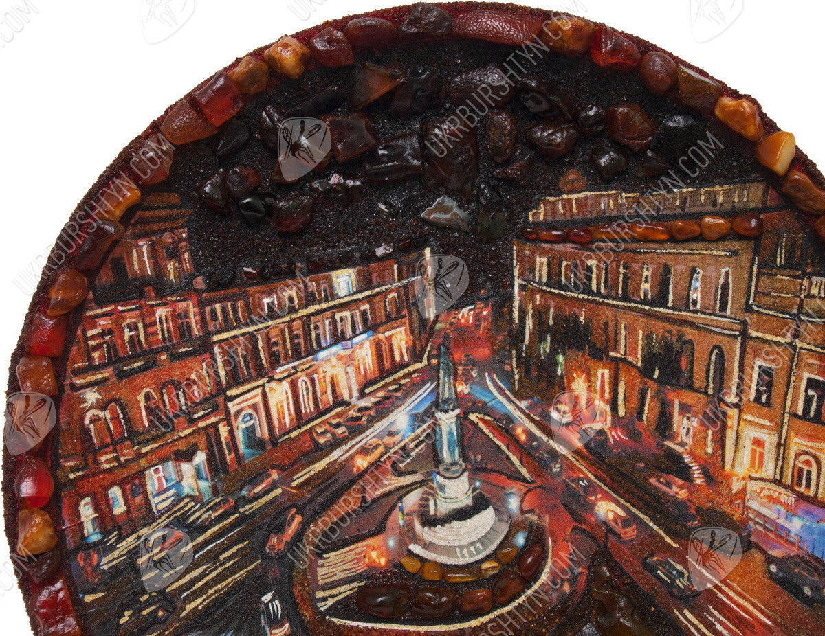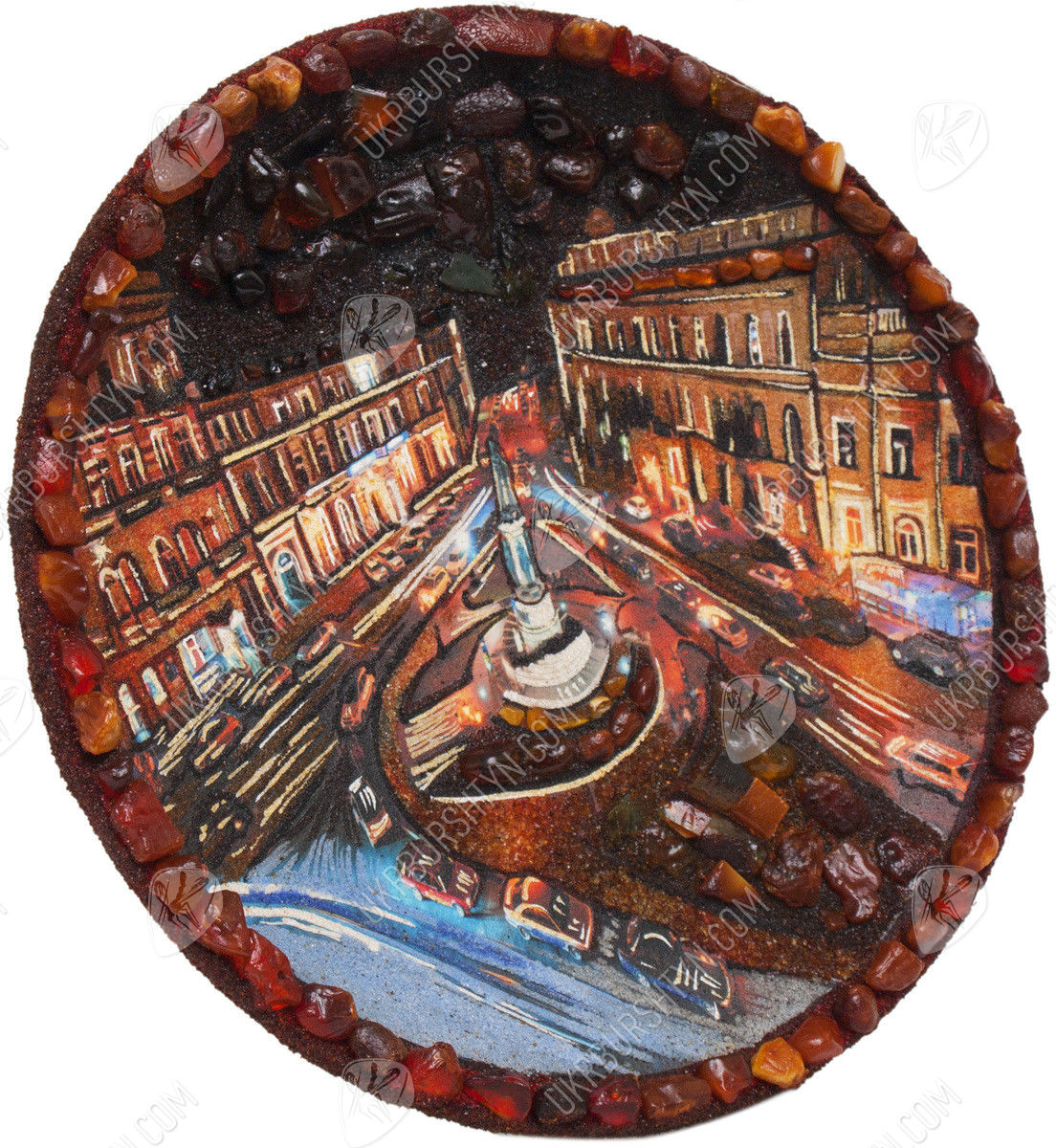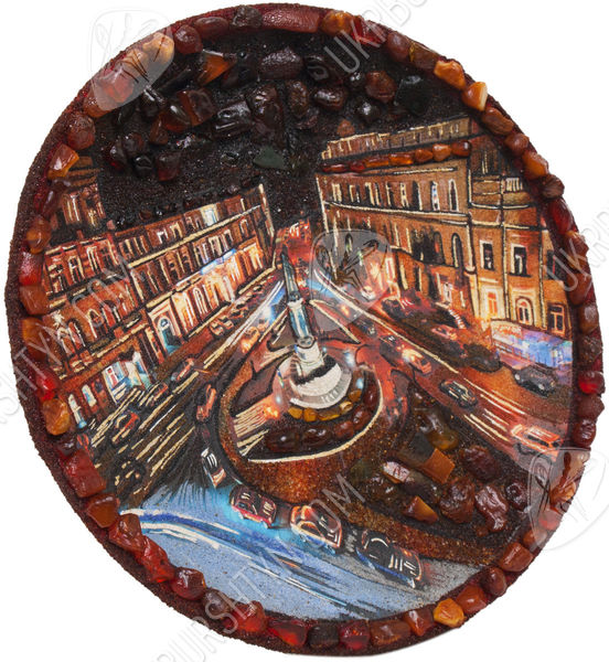 Пам’ятки Одеси воістину зачаровують поціновувачів нічного життя. Блискучими вогнями міста захоплюються ті, хто любить романтику і довгі прогулянки до сходу сонця. Морський теплий бриз надає неповторної атмосфери такому відпочинку. Вечірня Одеса подобається багатьом, тому вона зображена на даному сувенірі. Тарілка інкрустована натуральним темним бурштином. Річ ручної роботи, вона дуже цінна та вишукана. Неповторні враження і відчуття гарантовані тим, хто наважиться купити такий виріб під назвою «Нічна Одеса».