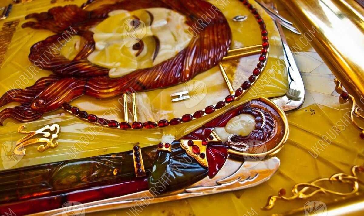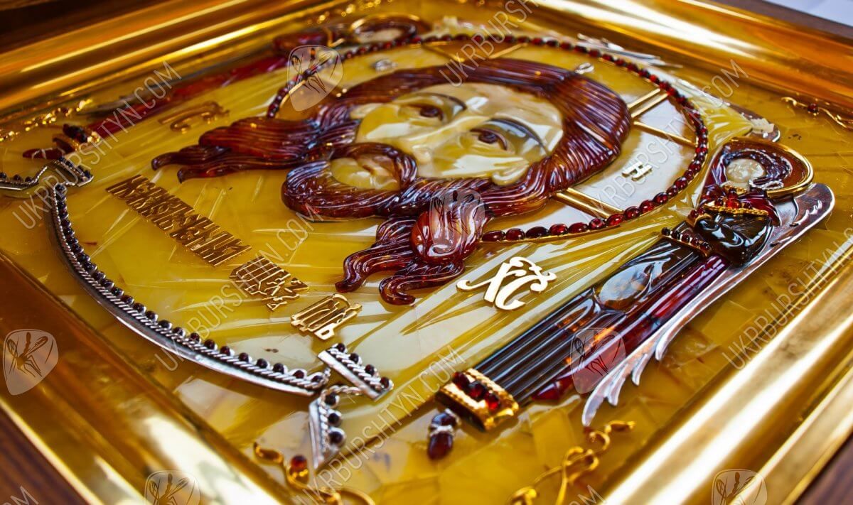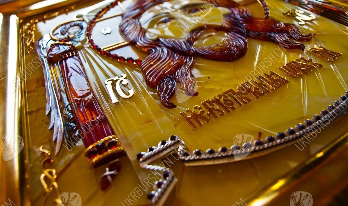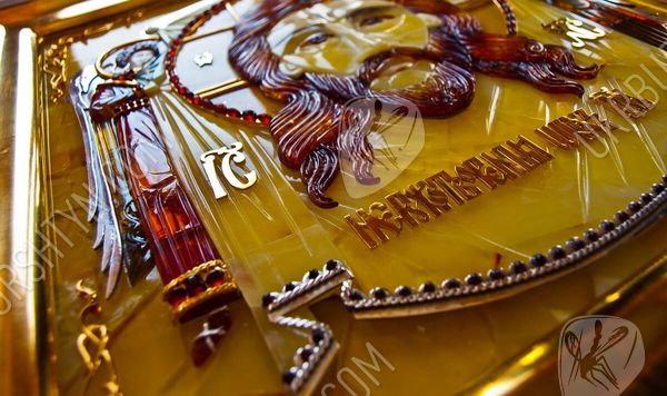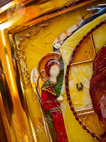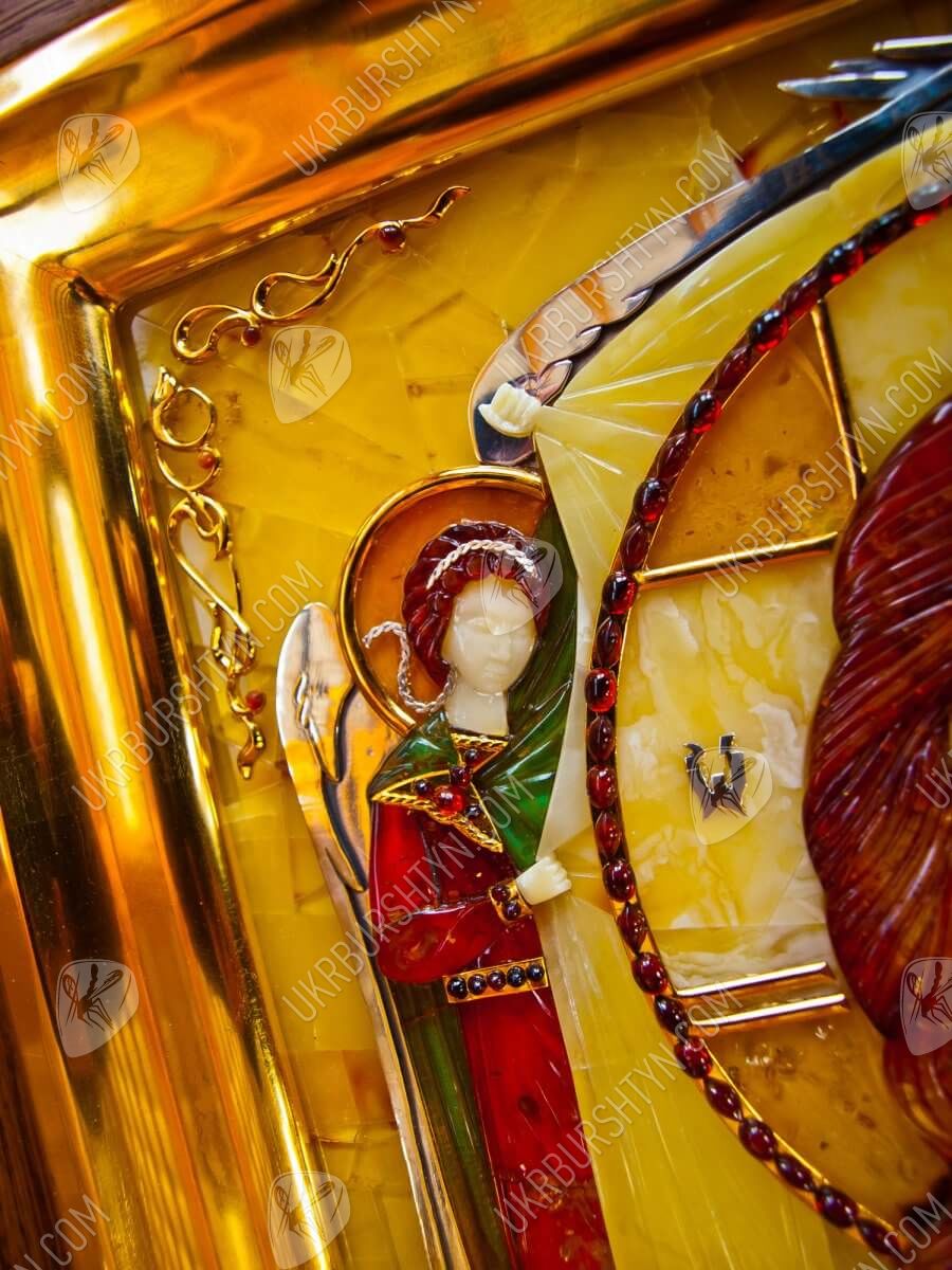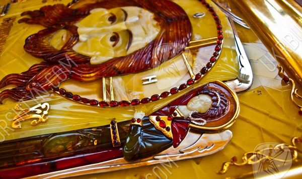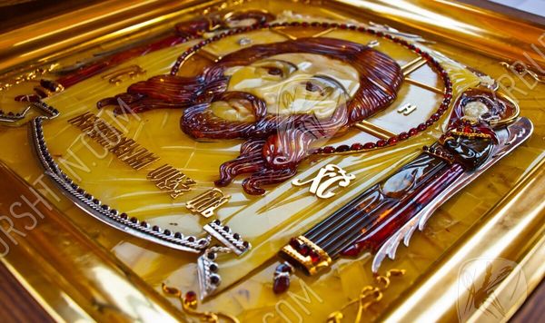 Мастер изготовил его из янтарных пластин, применив технику флорентийской мозаики, а металлические вставки сделал из серебра 925 пробы и металла с позолотой. Поэтому этот значимый и дорогой подарок вы сможете как оставить в собственном доме, так и преподнести другу либо близкому родственнику – ведь в божественной защите и покровительстве нуждаются все люди! Также по индивидуальному заказу возможно изготовить киот для иконы.