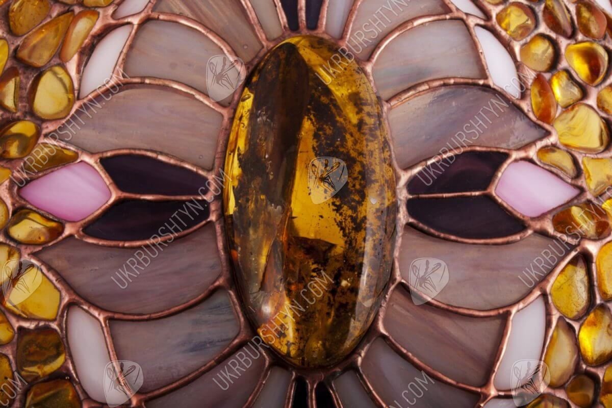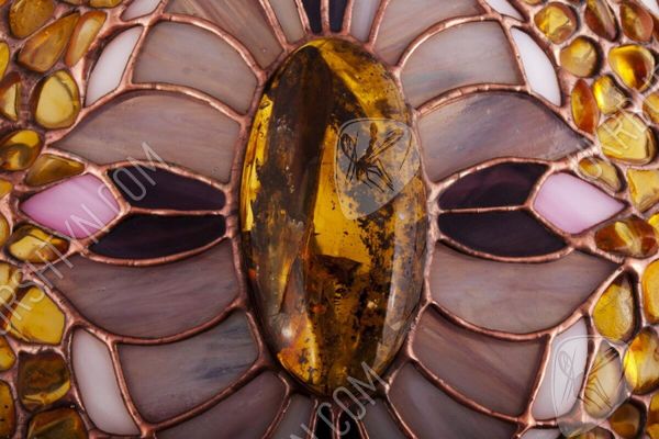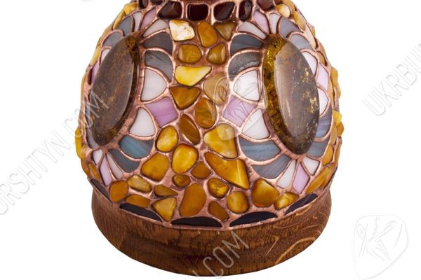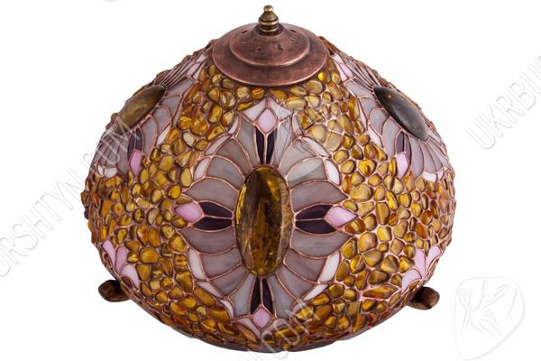 Если вам нравятся изделия ручной работы, в которых сочетаются янтарные кристаллы и витражное стекло, то эта лампа достойна того, чтобы освещать ваш дом!