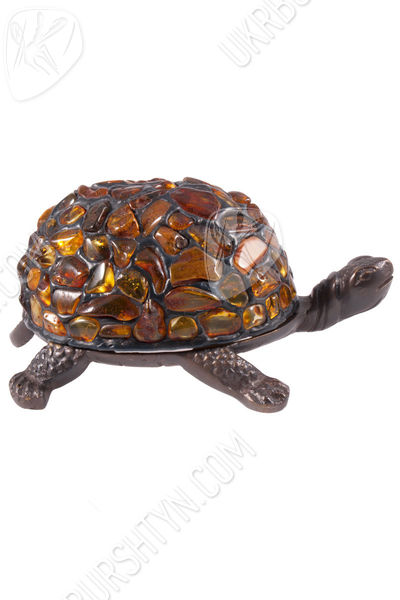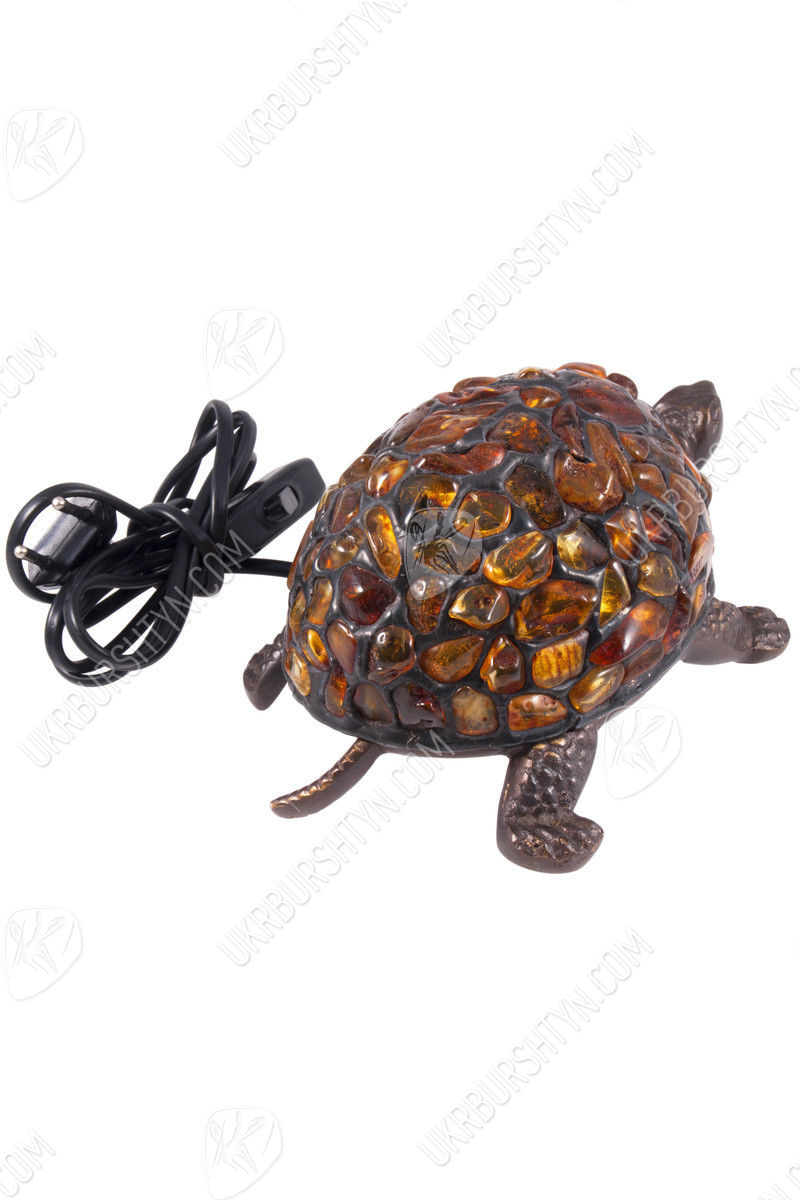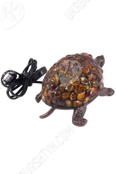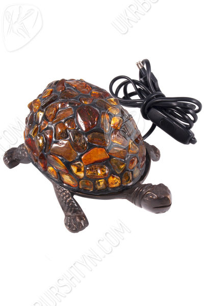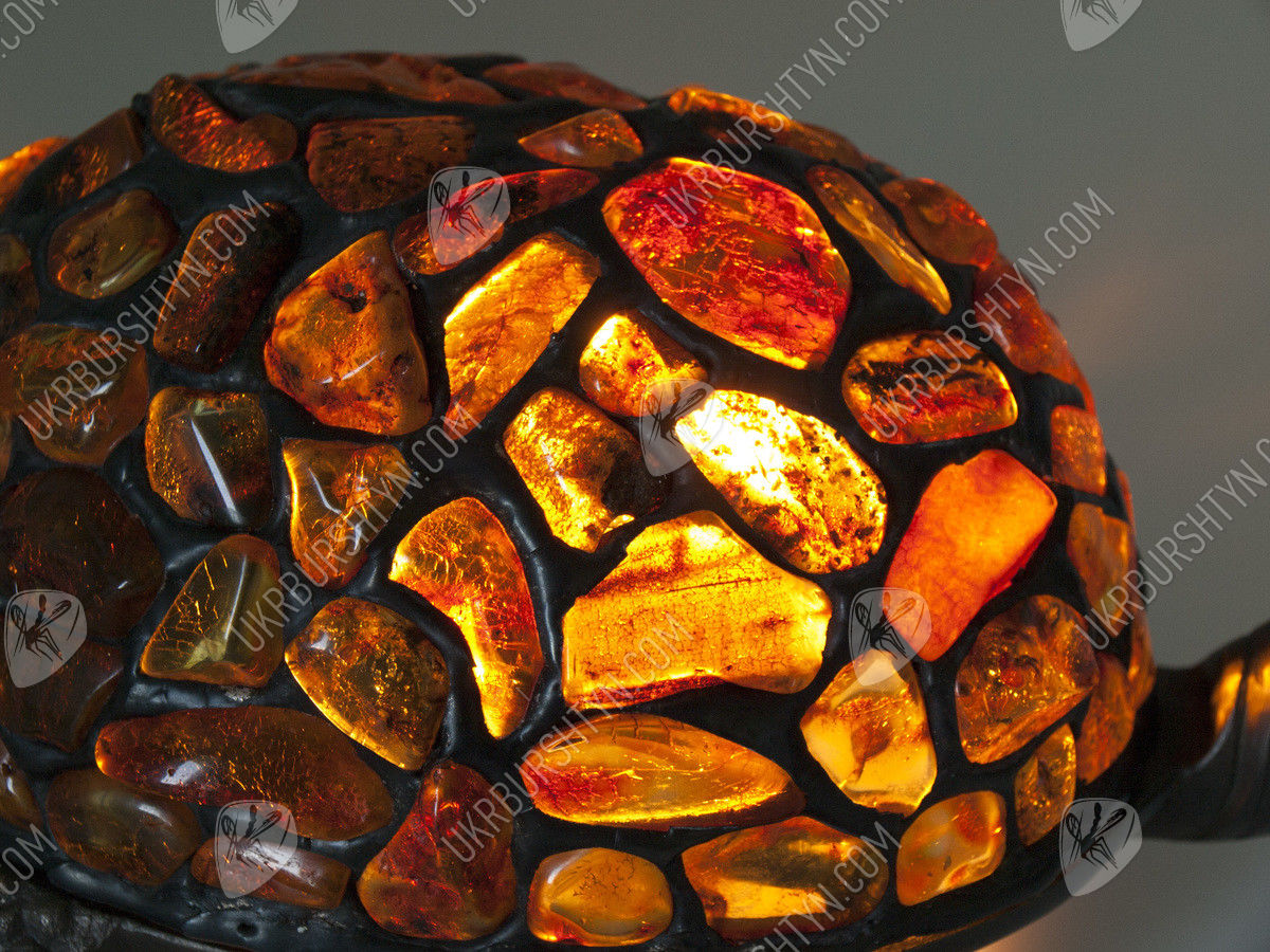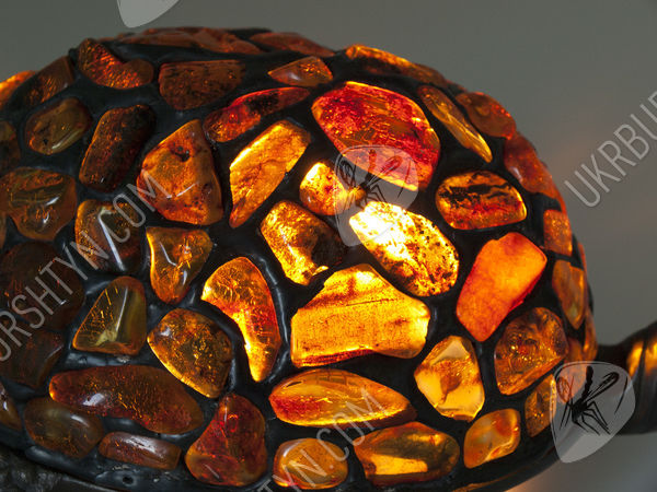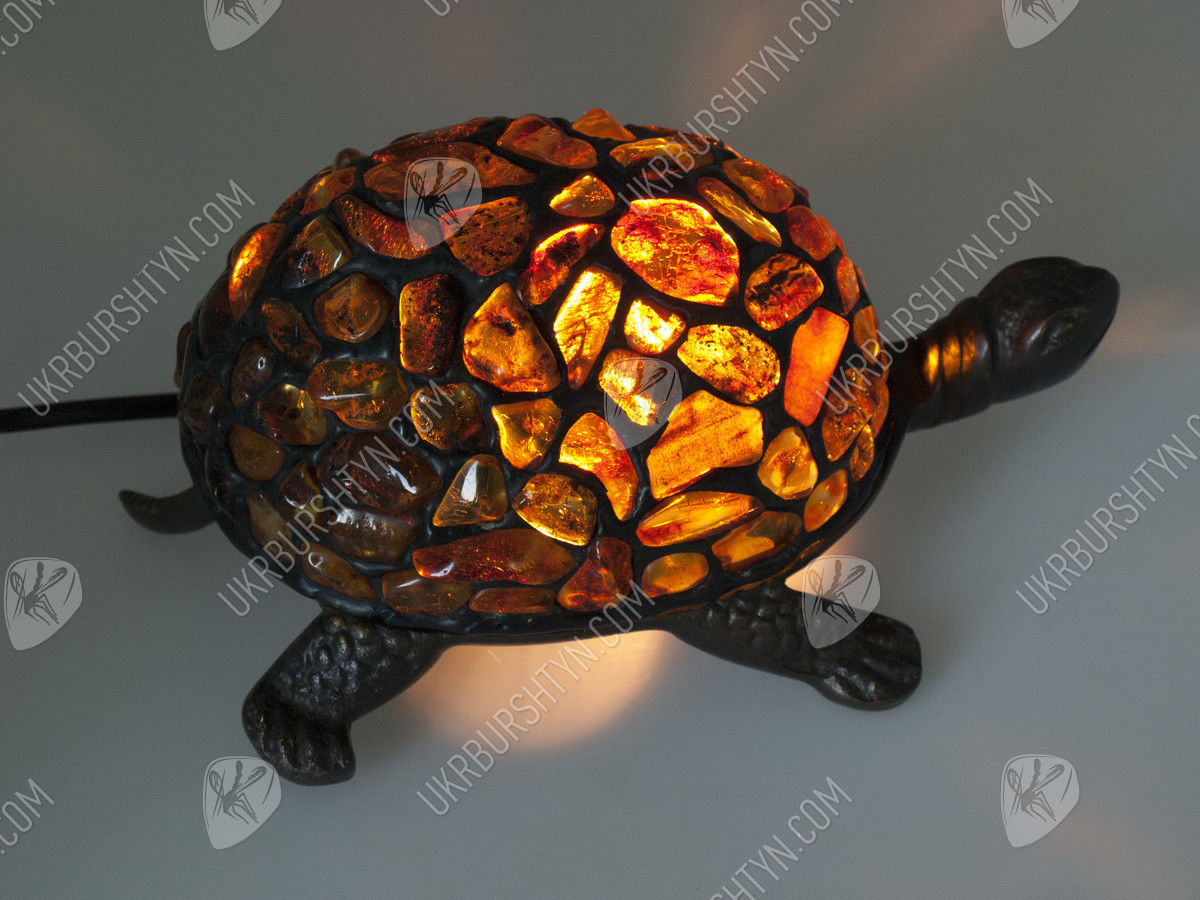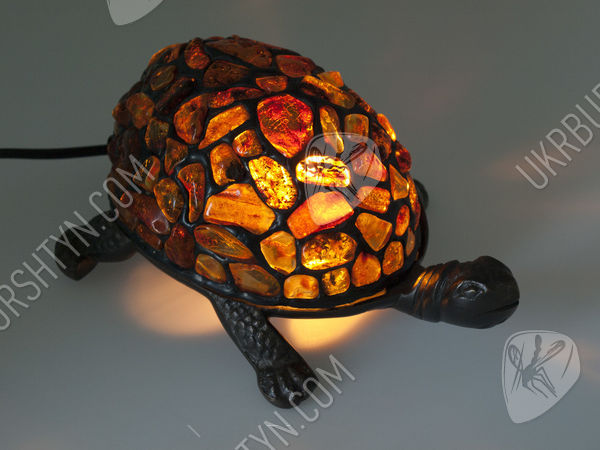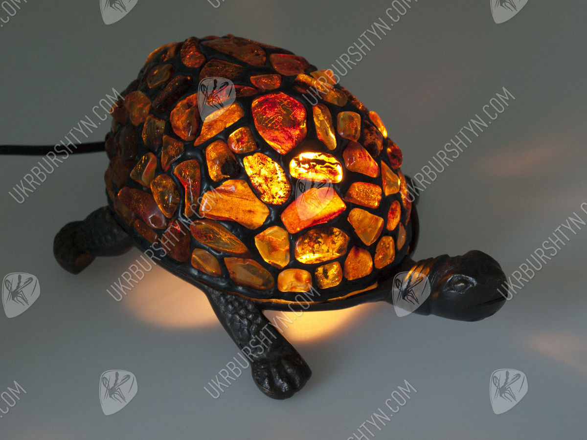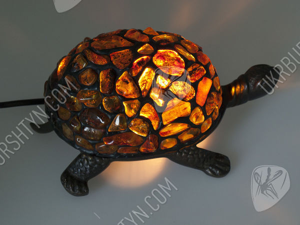 Даже днём эта оригинальная вещица в форме черепахи украсит Ваше жилище, став необычным дополнением к интерьеру. А как только Вы подключите произведение к электросети, оно и вовсе окажется центральным акцентом помещения, которым будут любоваться и взрослые, и дети. Сияние, пробивающееся из-под рельефного панциря, окрашено в мягкие, приятные для глаз золотистые, шафрановые, оранжевые тона, а ещё оно позволит Вам в деталях рассмотреть фактуру каждого натурального кабошона.