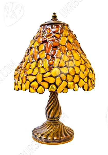 Её абажур конической формы напоминает о светильниках в классическом английском стиле, изысканных и элегантных. Он сделан из натурального янтаря, сияющего великолепными переливами жёлтых, лимонных, оранжевых и песочных оттенков. Ножка лампы выдержана в том же тоне и превосходно дополняет общую цветовую гамму. А стоит вам зажечь её – и вы сможете любоваться этим мягким, нежным светом весь вечер!