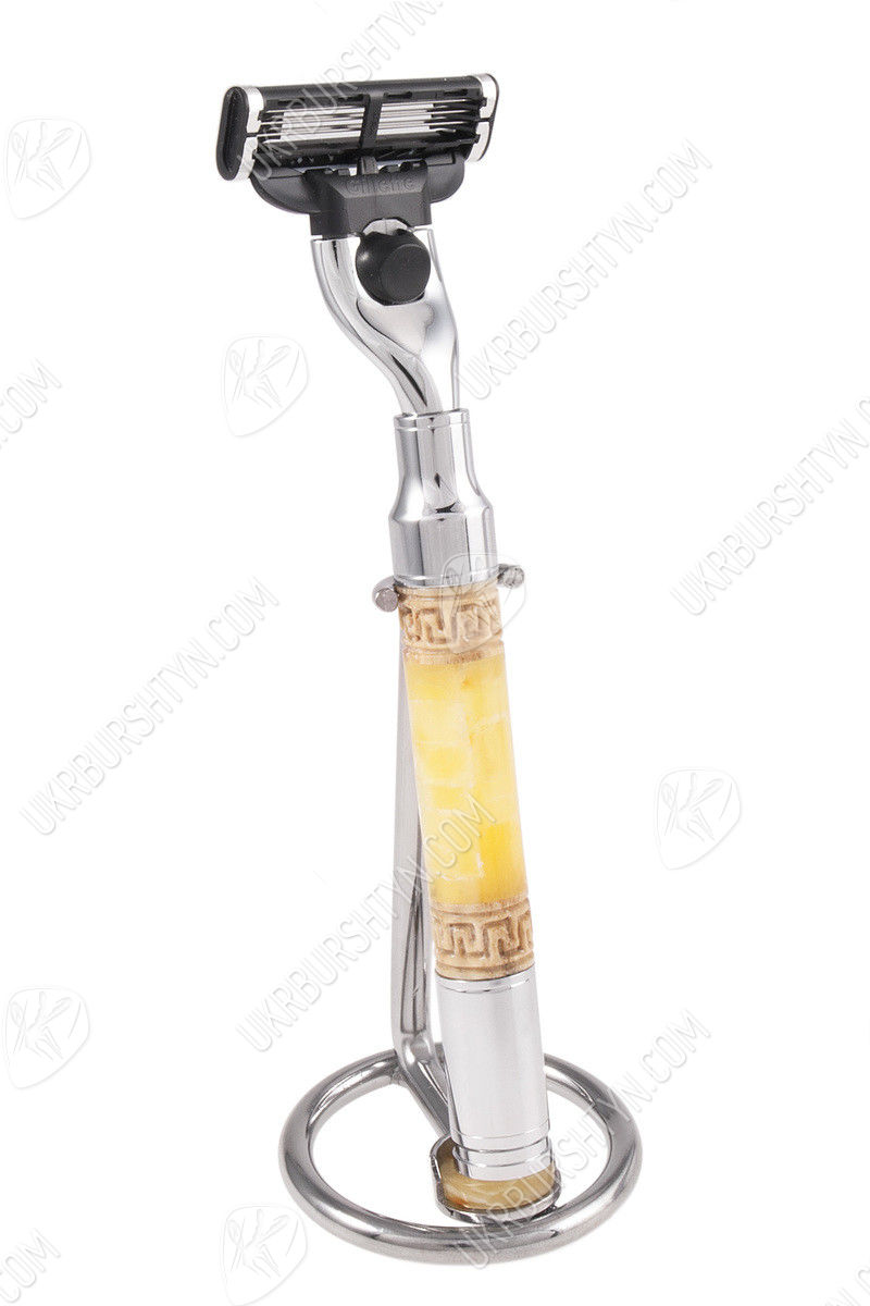 Статус бизнесмена требует, чтобы даже бытовые мелочи были класса VIP. Подарки для руководителей тоже следует выбирать исходя из этого правила. Именно поэтому мастера интернет-магазина «Янтарь Полесья» создали бритвенный станок, который выглядит элегантно и сильно. Он существенно отличается от своих пластиковых собратьев, ведь прослужит владельцу годы. Его ручка сделана из натурального янтаря жёлтого цвета, а резьба на ней выполнена вручную. Станок дополнен удобной металлической подставкой. Такой подарок понравится каждому мужчине, а начальник наверняка поймёт, насколько сотрудники ценят его.