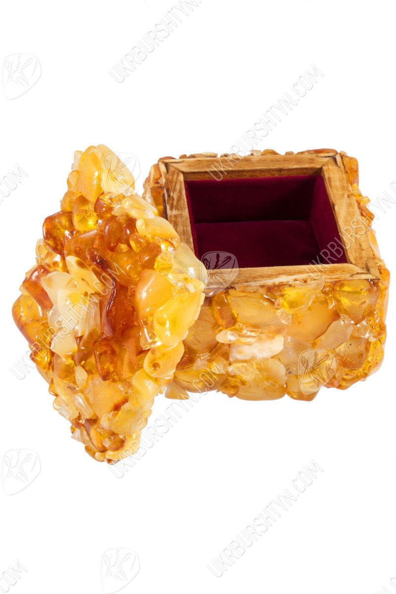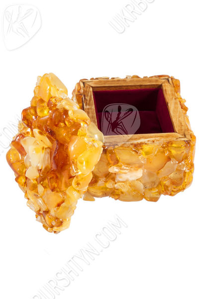 Шкатулка инкрустированная янтарем с цветком