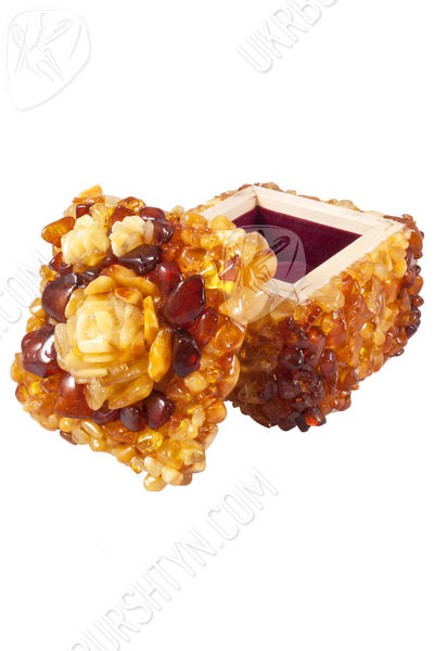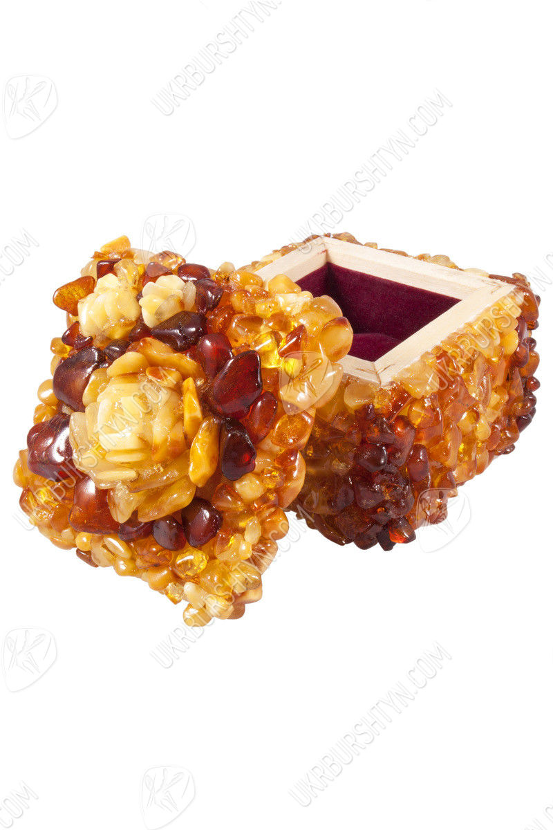 Шкатулка инкрустированная янтарем с розой